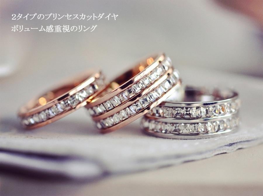 プリンセスカットフルエタニティ ステンレス リングシングル フルエタニティリング 大人可愛い 上品 デイリー 安心 上品 金属アレルギー 結婚式 プレゼント パーティー ジュエリー アク