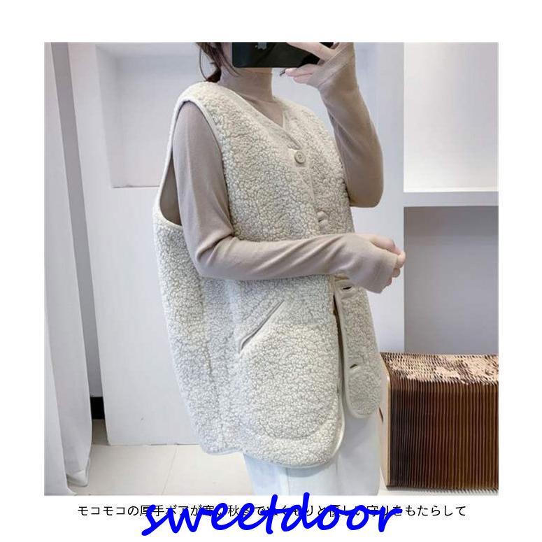 フリースベスト 冬 レディース ベスト 厚手 前あき ジレ モコモコ 暖かい ジレベスト 通勤 アウター ノースリーブ 春秋 チョッキ レトロ