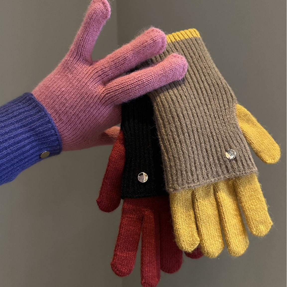 冬のデュアル パーパス カラー ブロッキング ニット ウール手袋レディース ウール オープン フィンガー タッチ スクリーン暖かいサイクリング学生