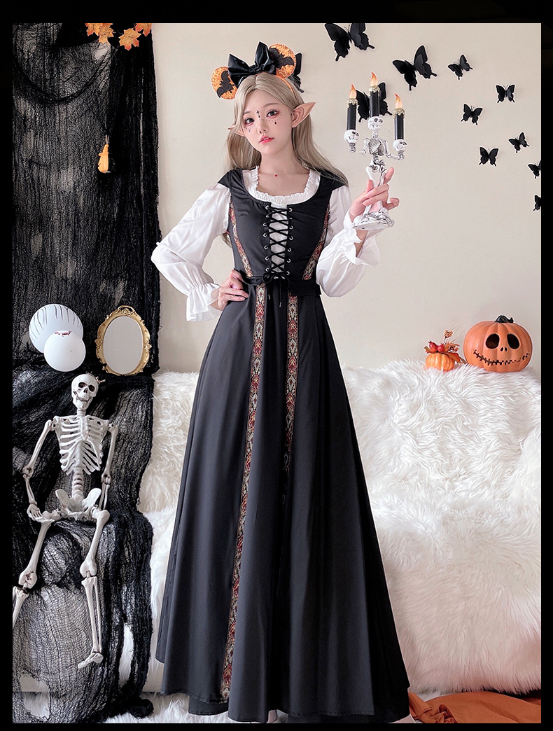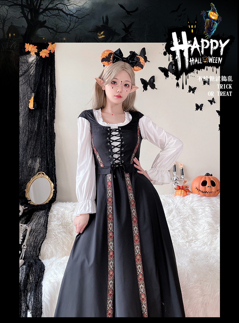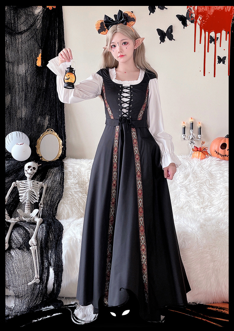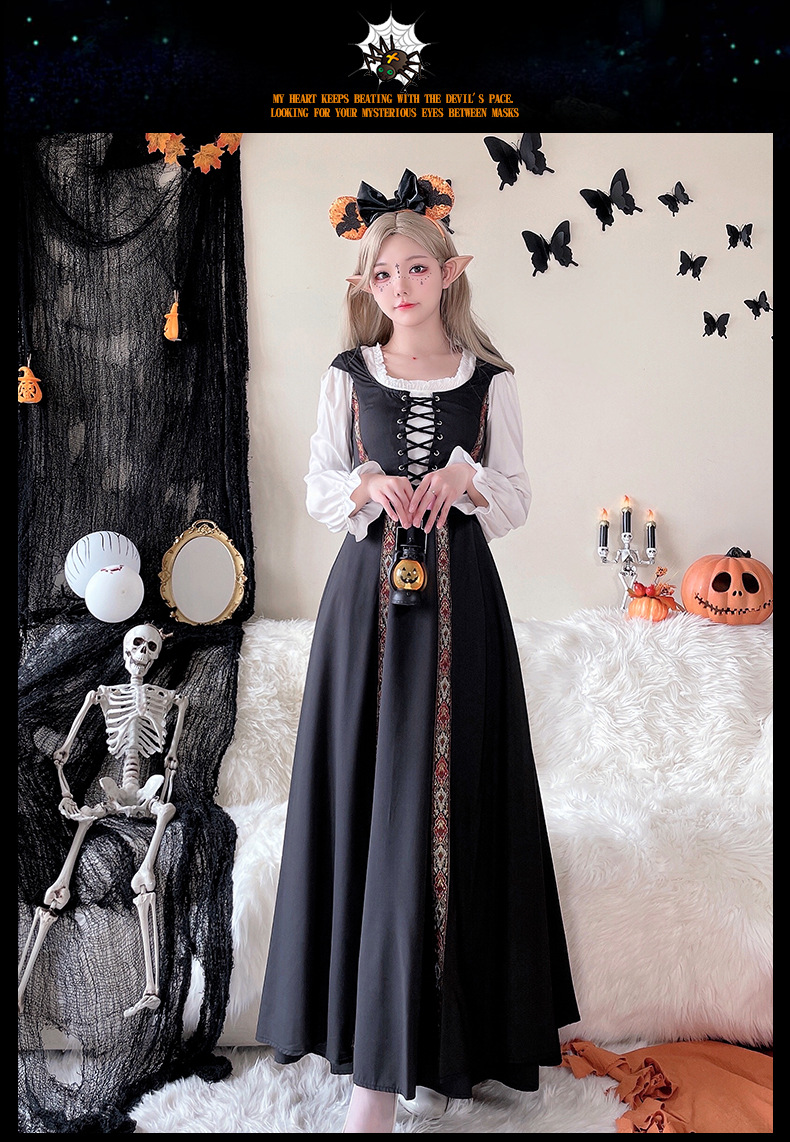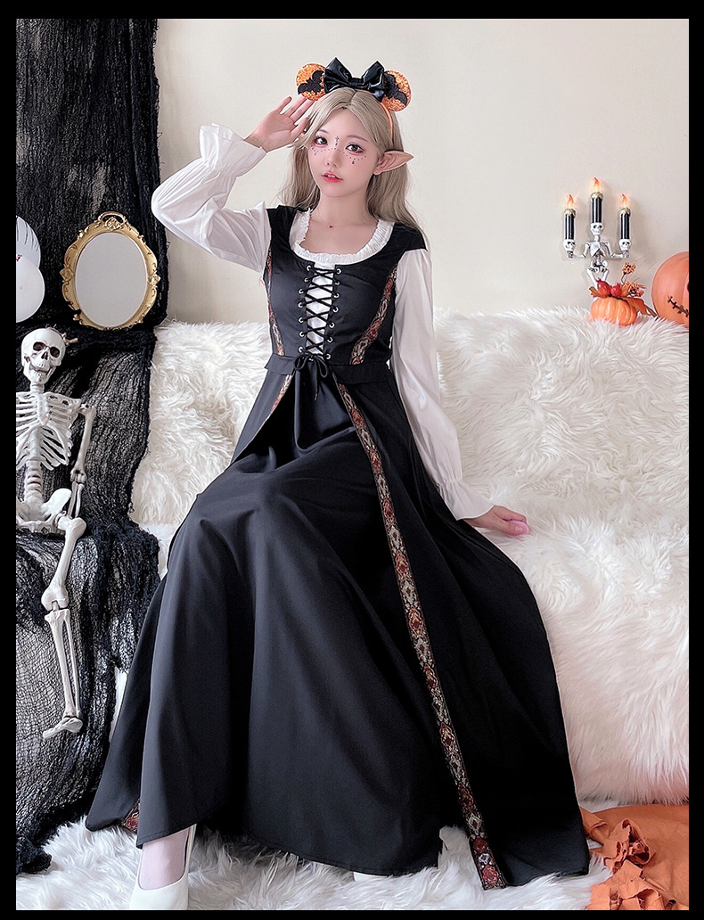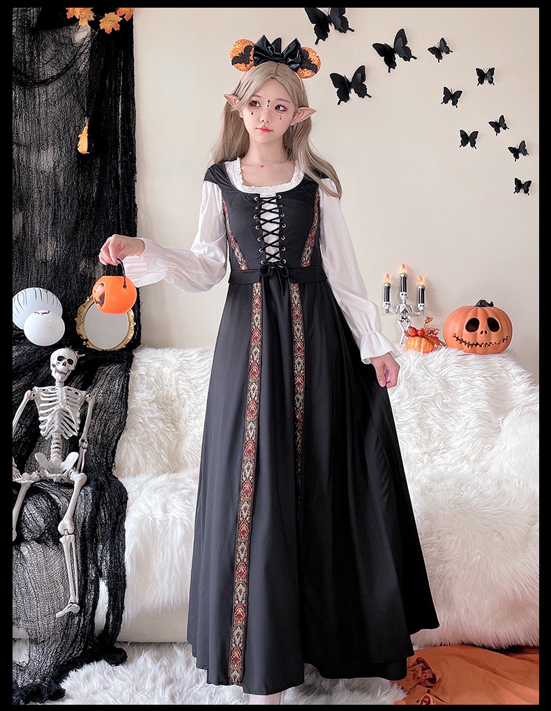 コスプレ 万聖節 ロリータ 韓国ファッション ハロウィンコスチューム レトロ 宮殿風 魔女ドレス ロングスカート 中世文学 ヨーロッパ 牧歌風