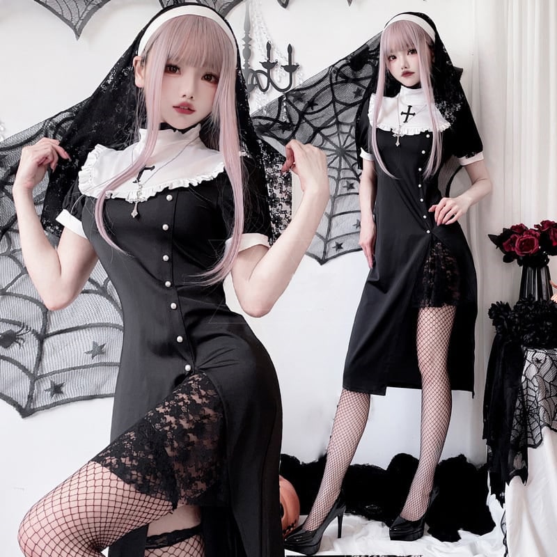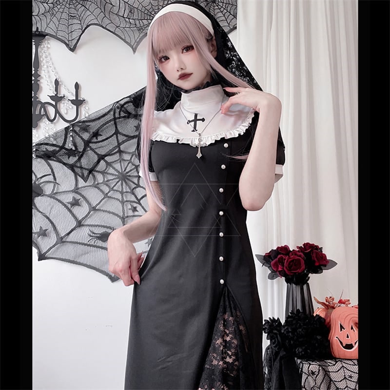 2024 短纳期 ハロウィン 修道女 仮装 コスチューム 衣装 学園祭 文化祭 制服 切り替え ワンピース かわいい コスプレ ハロウィン