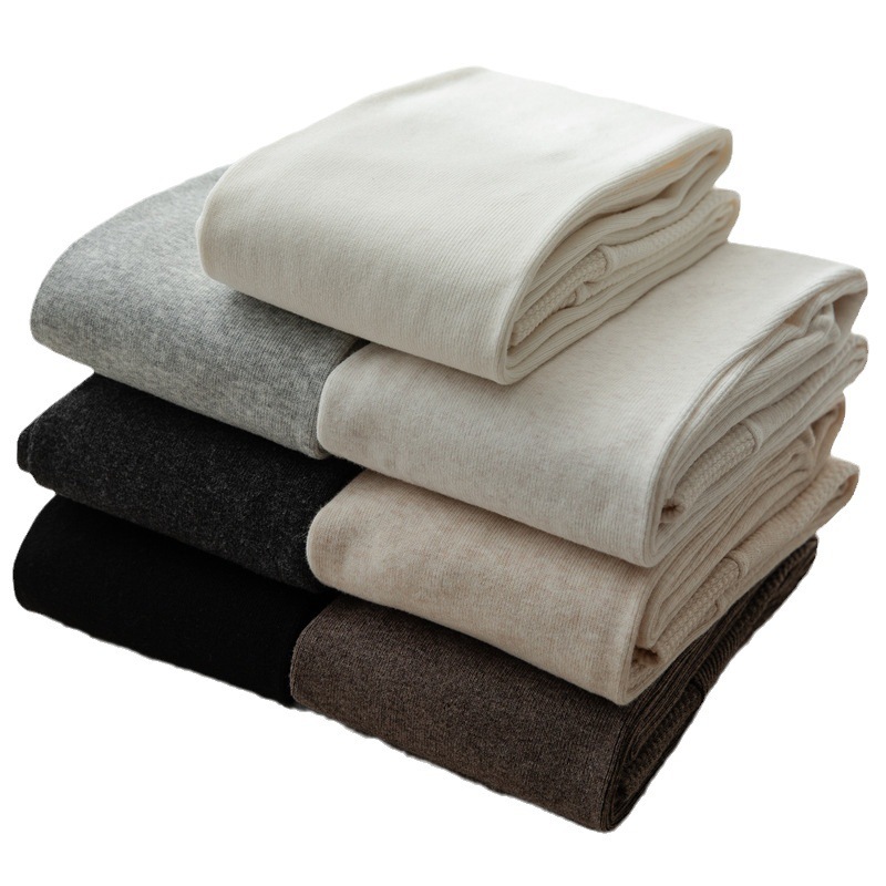 冬支度タイツ ニット縦縞ボトムス女性秋冬パッド入り厚手ハイウエストミルク白パンスト レギンス
