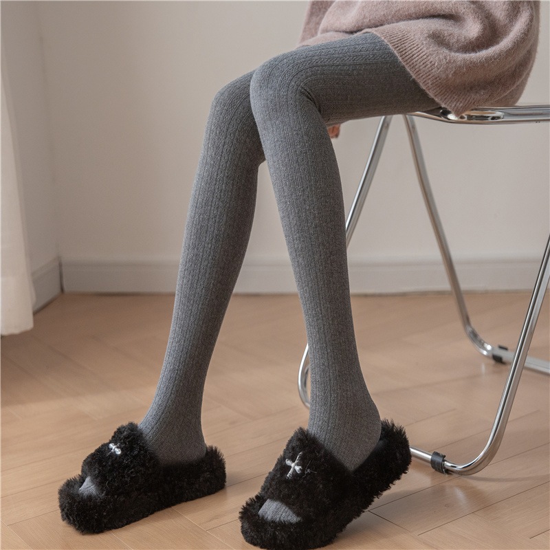 冬支度タイツ パッド入りグレーボトムス秋冬ニットツイストバーチカルストライプパッド入りパンティストッキング暖かいボトムソックス レギンス
