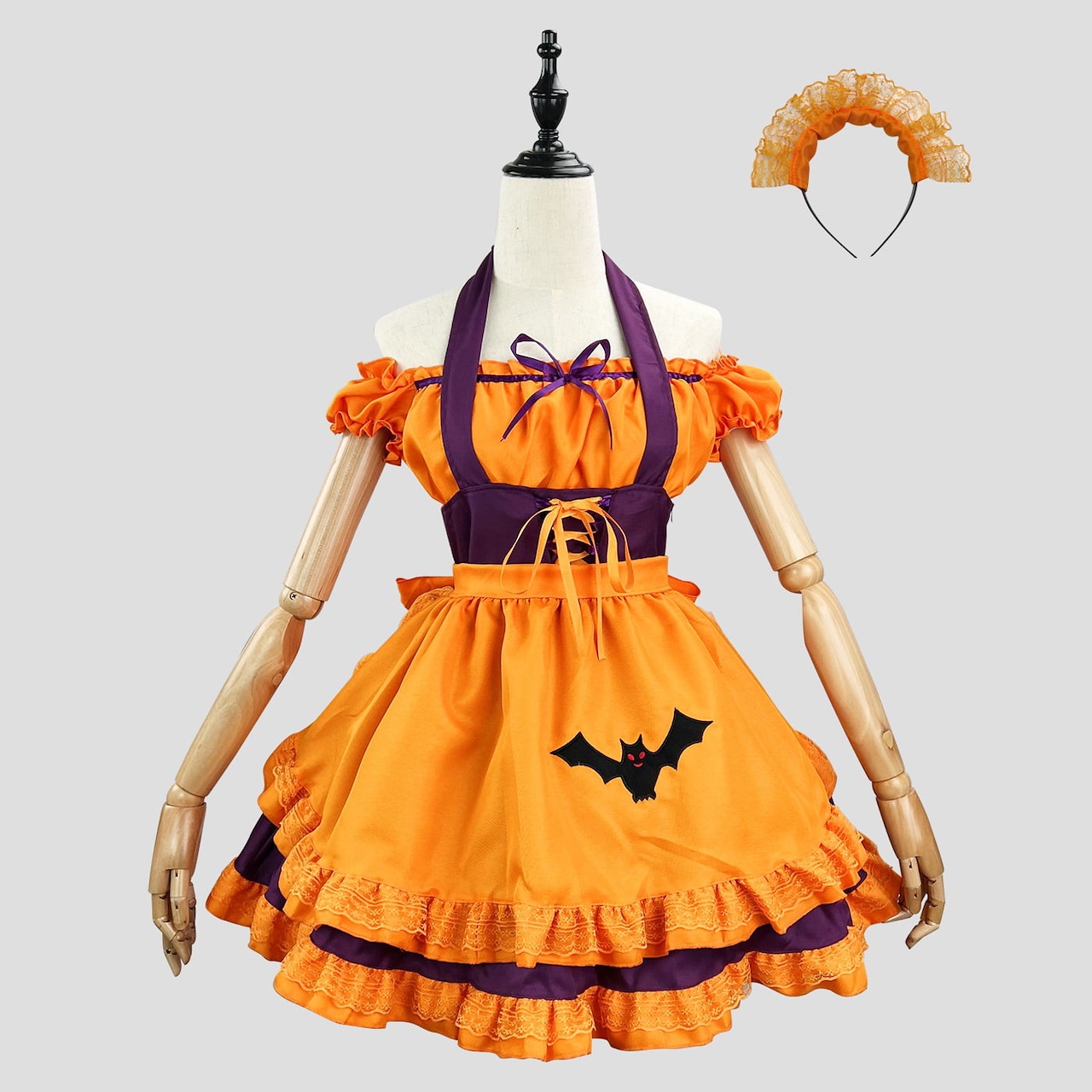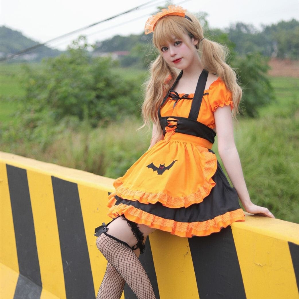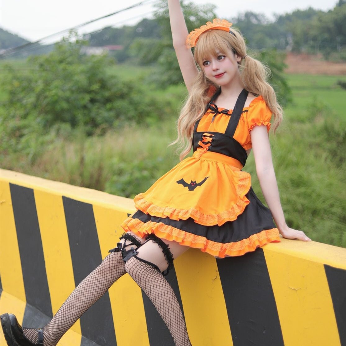 ハロウィン 今年 短纳期 刺繍 バット お祭り メイド服 コスプレ 撮影 大きいサイズ ワンピース ハロウィン