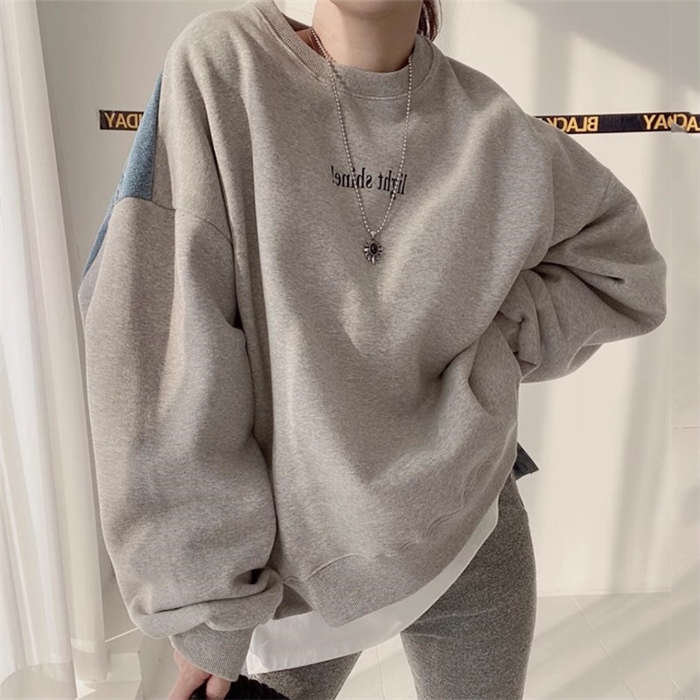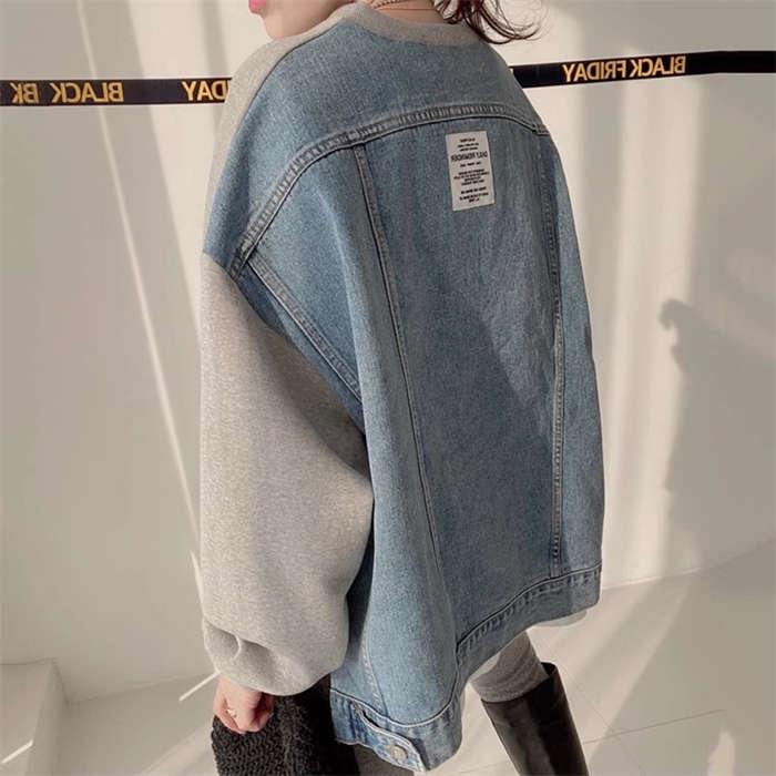 異素材切り替え トップス スウェット トレーナー レディース 春 秋 デニム シンプル 長袖 レディース メンズ ゆったり 大きいサイズ ユニセックス きれいめ 通勤 ゆったり 切り替えスウェット 体