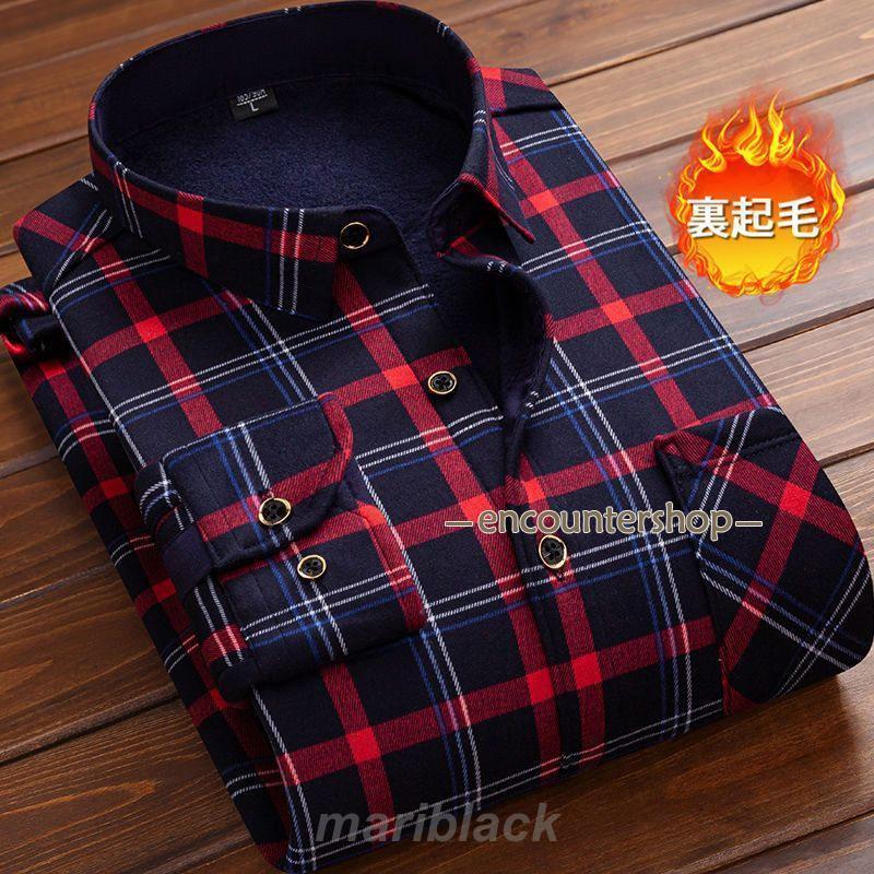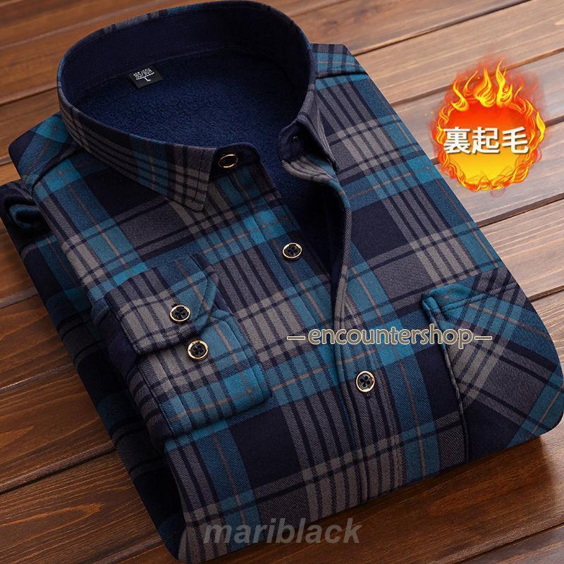 シャツ 裏起毛 防寒 メンズ チェック 長袖 ワイシャツ 秋冬 冬服 ビジネスシャツ 開襟 裏ボア 暖かい 厚手 トップス カジュアルシャツ 通勤通学