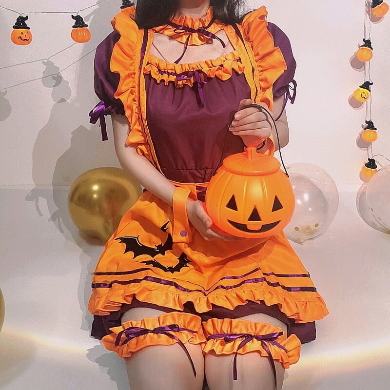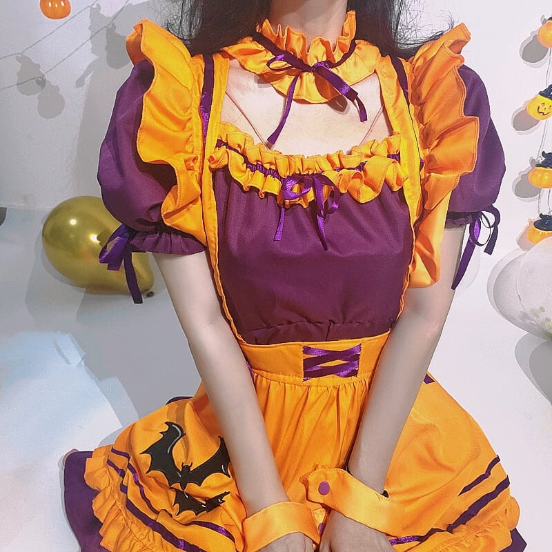 ハロウィン 今年 短纳期 大きいサイズ コスプレ メイド服 こうもり スウィート ワンピース コスプレ ハロウィン