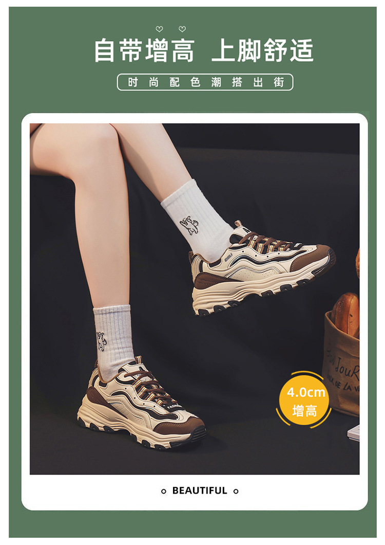 新しいポップスシューズの韓国版 2024春の学生スポーツランニングシューズ カジュアルな厚底の高さ追加女性の靴 厚底スニーカー