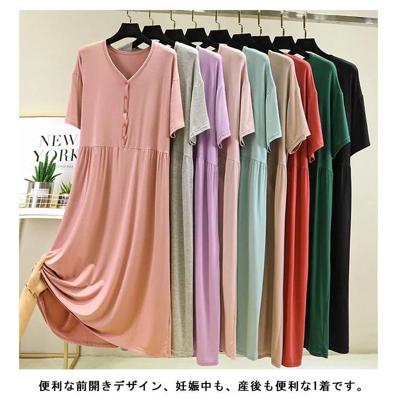 超人気 接触冷感 マタニティ ルームウェア ノースリーブ 長袖 春夏 部屋着 レディース 半袖 秋 ワンピース モダール ロング丈 前開き 授乳 妊婦パジャ