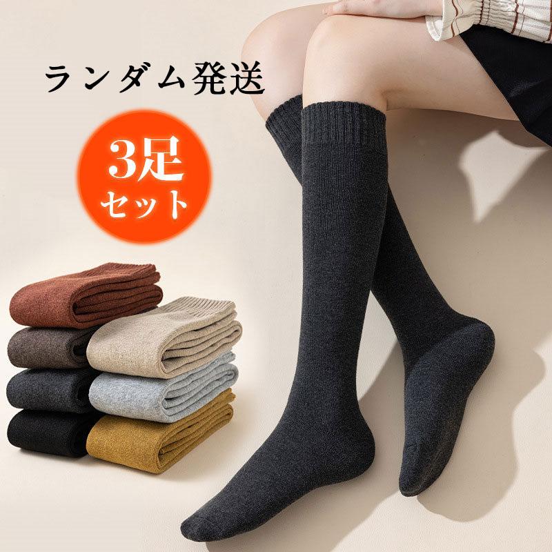 靴下 レディース 綿 ハイソックス スクールソックス 裏起毛 裏毛 シンプル くつした 防寒 無地 暖かい 厚手 冬用