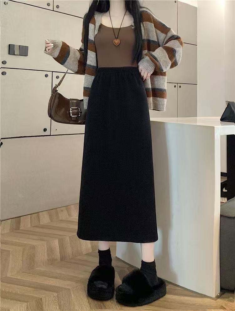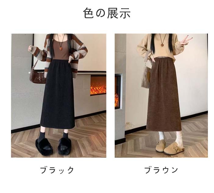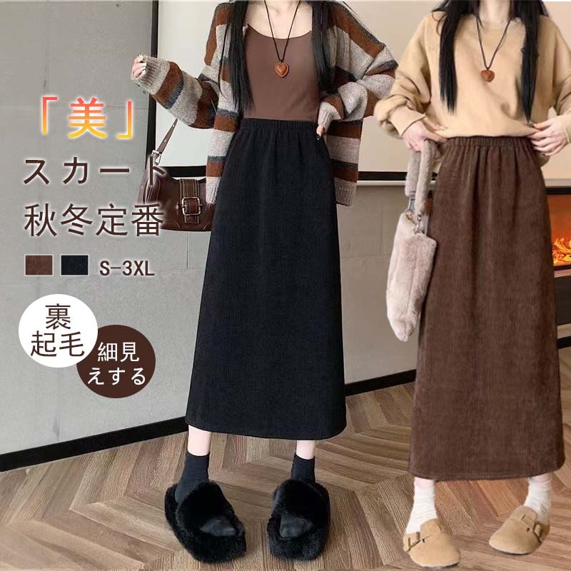 2025新登場 秋冬用 コットンミディスカート 無地ウエストゴム スカート ストッキング対応 防寒保温 裏起毛女性用スカートレディースファッション スカート
