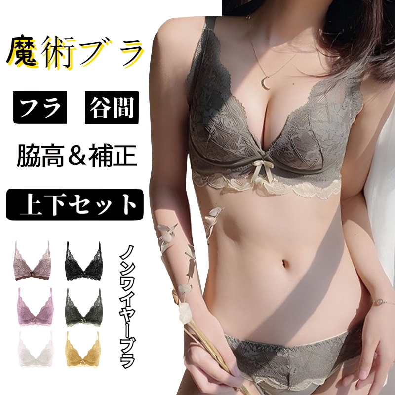 ナイトブラ ノンワイヤー ブラジャーショーツセット 人気ブラジャー 下着 上下セット 脇高でしっかり補正&谷間 ブラジャー ブラショーツ 育乳ブラ 盛りブラ 女性用