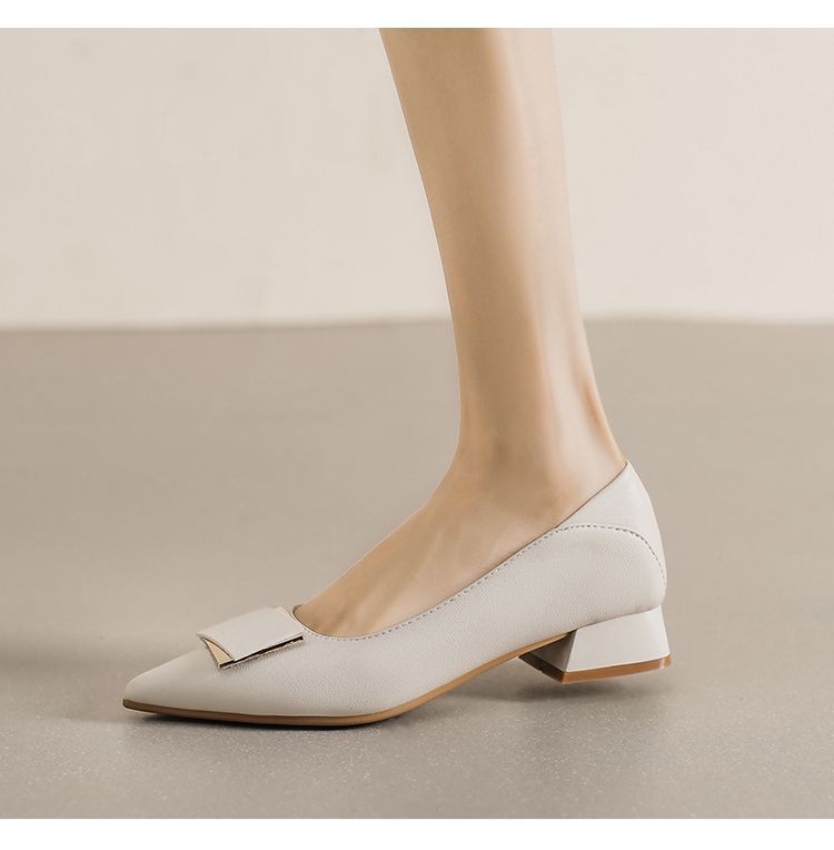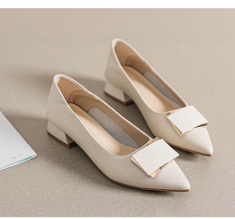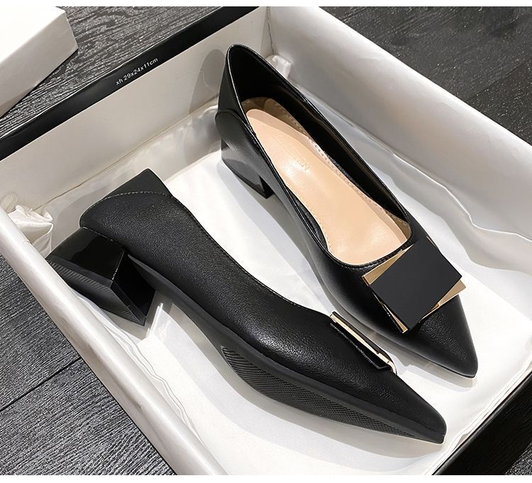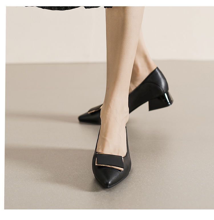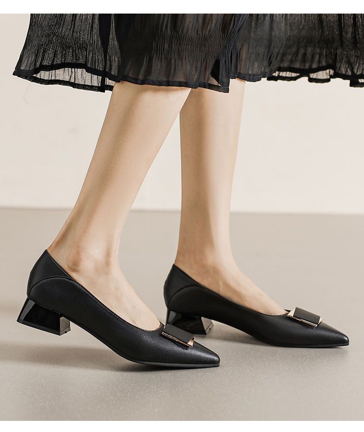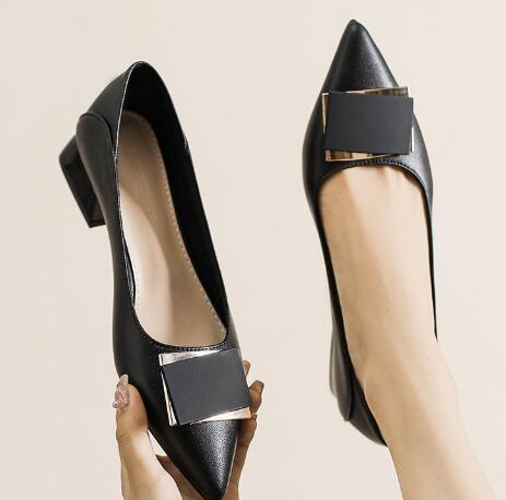 厚いヒール パンプス レディース シンプル ポインテッドトゥ ローヒール パンプス 無地 ハイヒール パンプス3color ポインテッドトゥ
