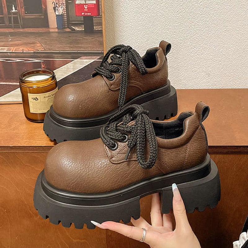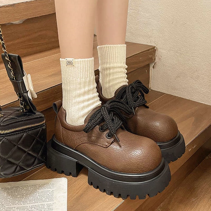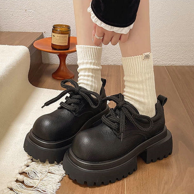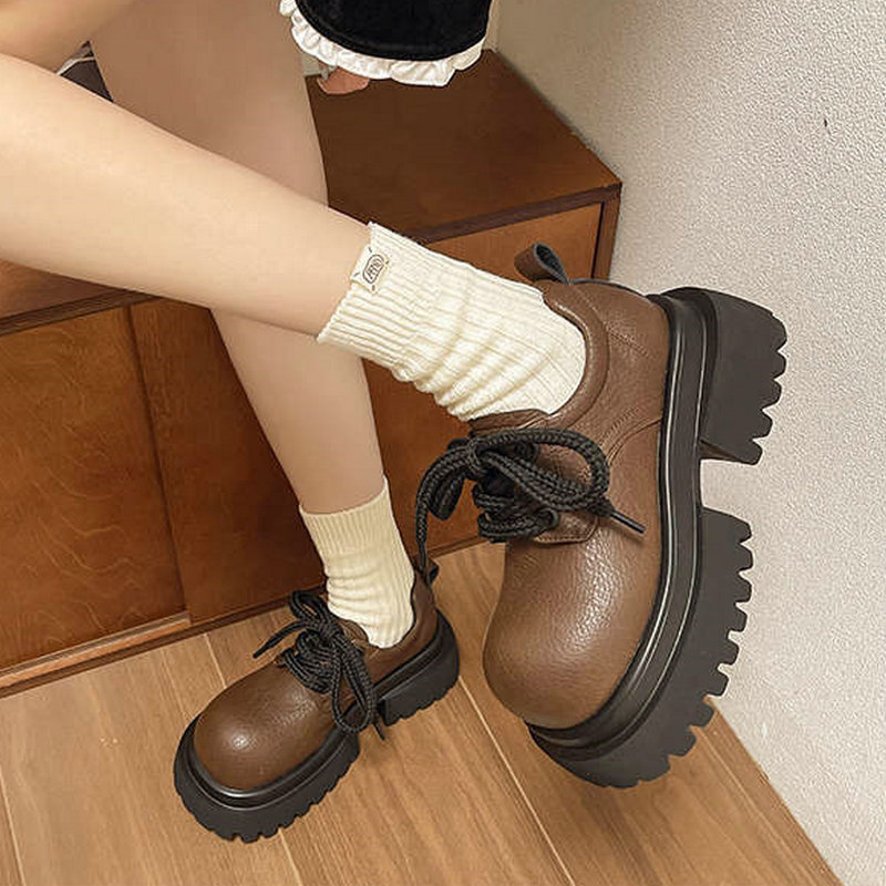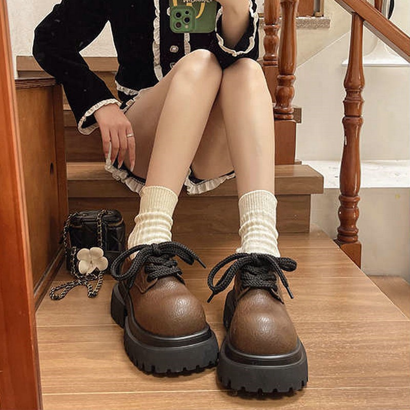 ラウンドトゥ 太ヒール ローファーパンプス 英国スタイル 可愛い レースアップ ローファー レディース レトロ ワイルド 白 ローファー 美脚効果
