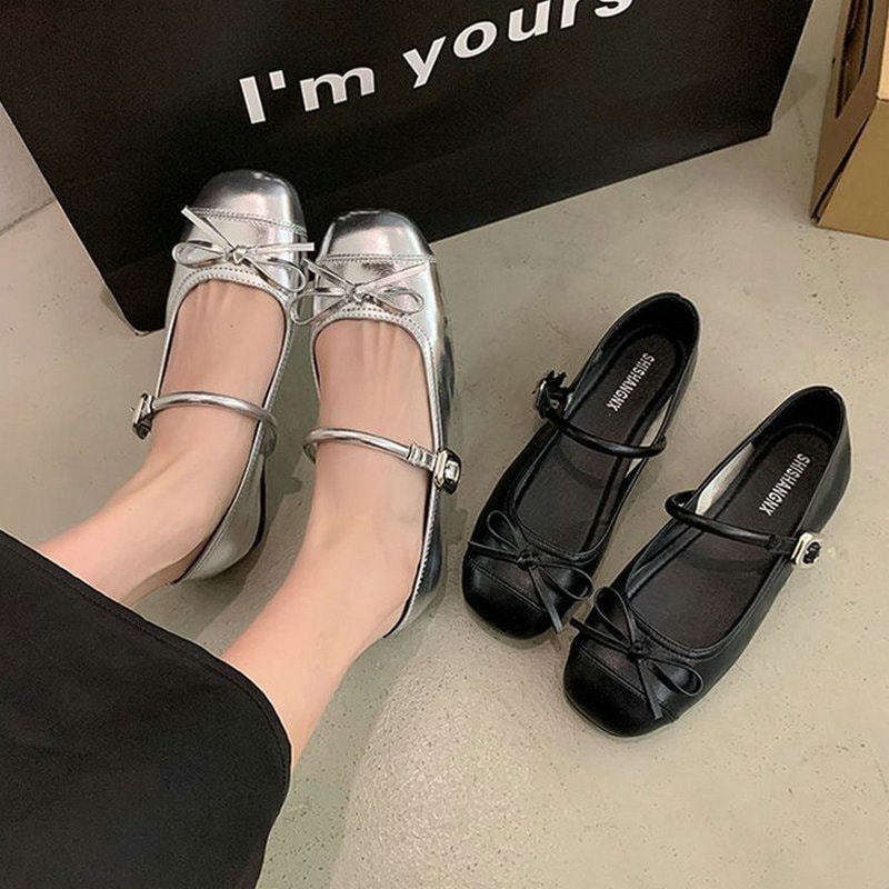 新作 トレンド先取り スクエアトゥ ちょう結び フラット 可愛い sweet系 フラット レディース Chic気質 小さい新鮮な ワイルド フラット