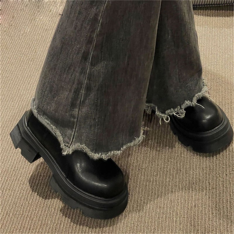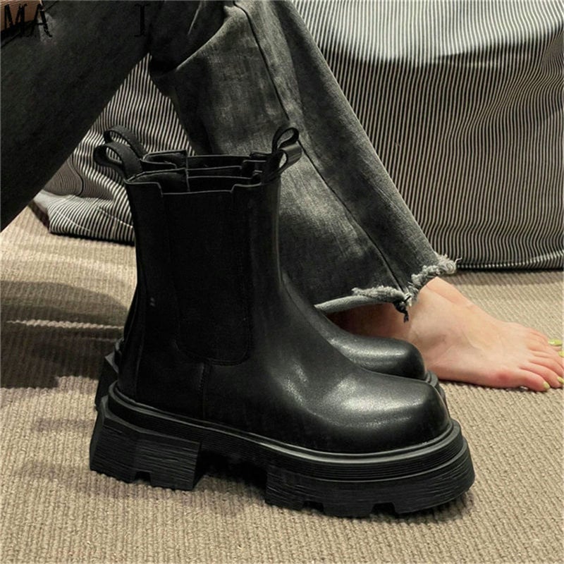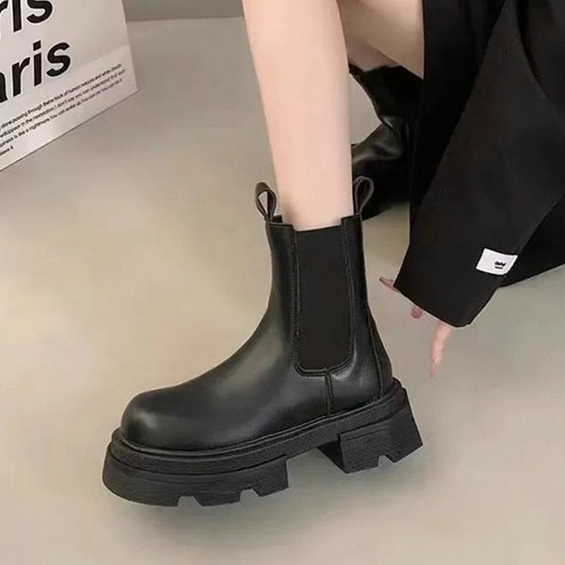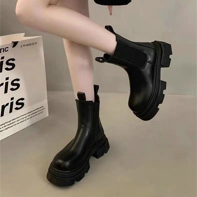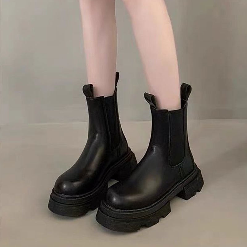 通年で使用可能 ラウンドトゥ ショートブーツ 厚底 英国スタイル シンプル ワイルド ブーツ ショートブーツ 脚長効果 ショートブーツ ローヒール