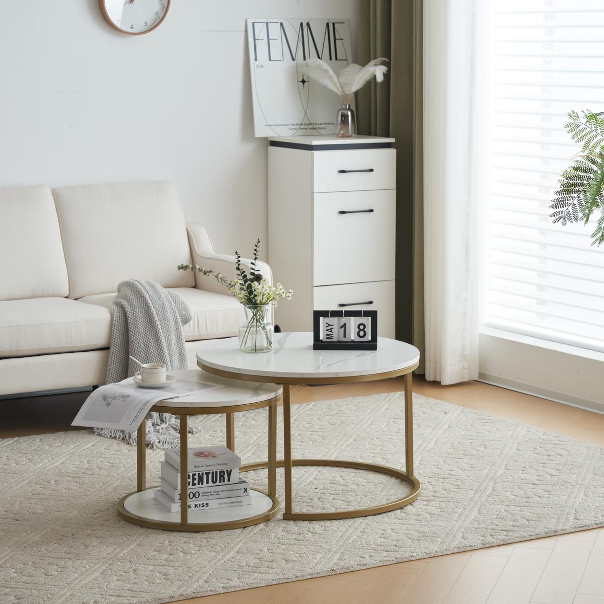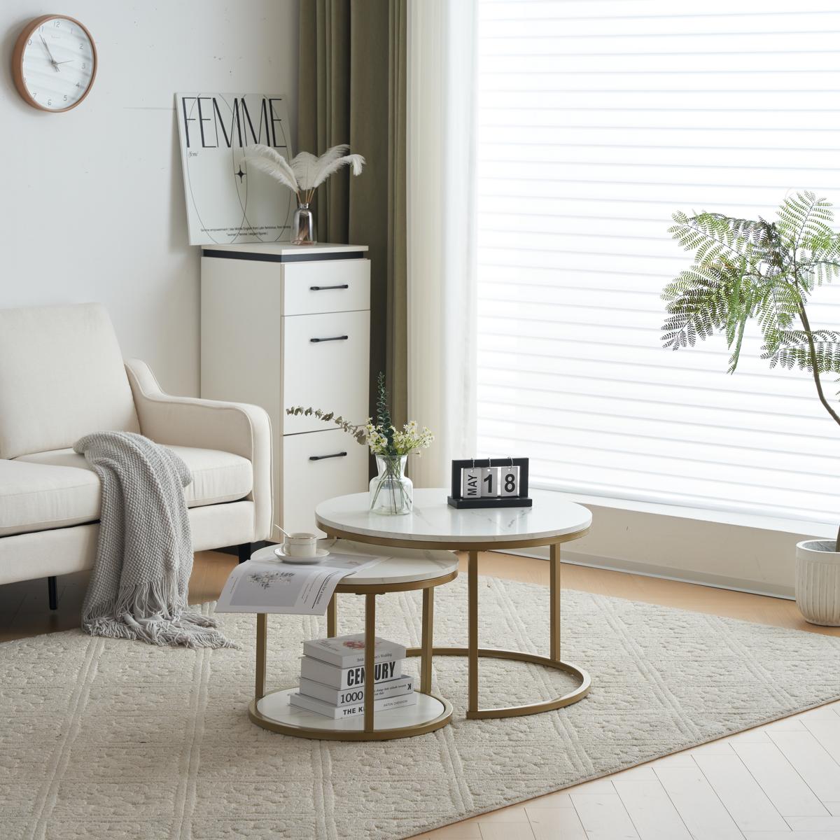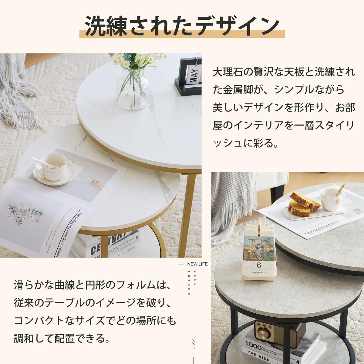 新作 ホワイトネストテーブル ローテーブル センターテーブル 大理石柄 大理石調 北欧風 シンプル おしゃれ モダン ゴールド リビングテーブル 人気 White Casual