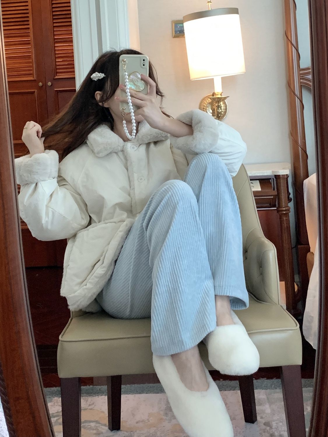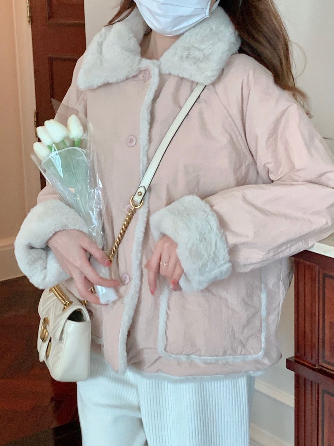 スウェット 2023秋冬の新型の大きい袋の両面を着ます学生のかわいい厚手の甘い綿の服の小さい外套女 トレンチコート