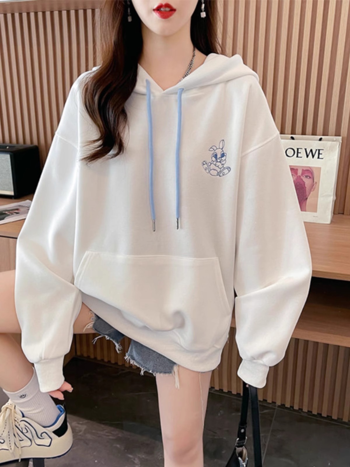 キャラクター刺繍うさぎ帽子パーカーレディース秋冬新作かわいい風デザイン感たっぷりのトップス Tシャツ カットソー