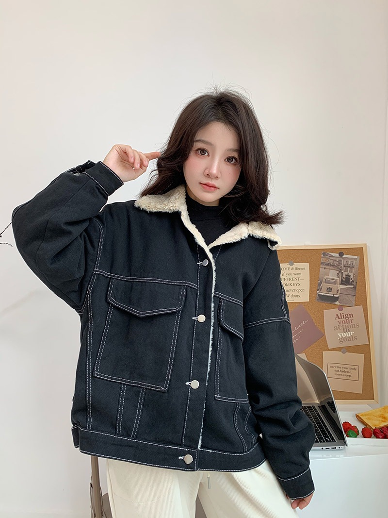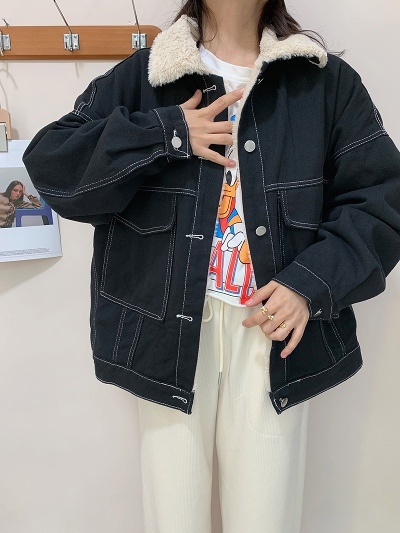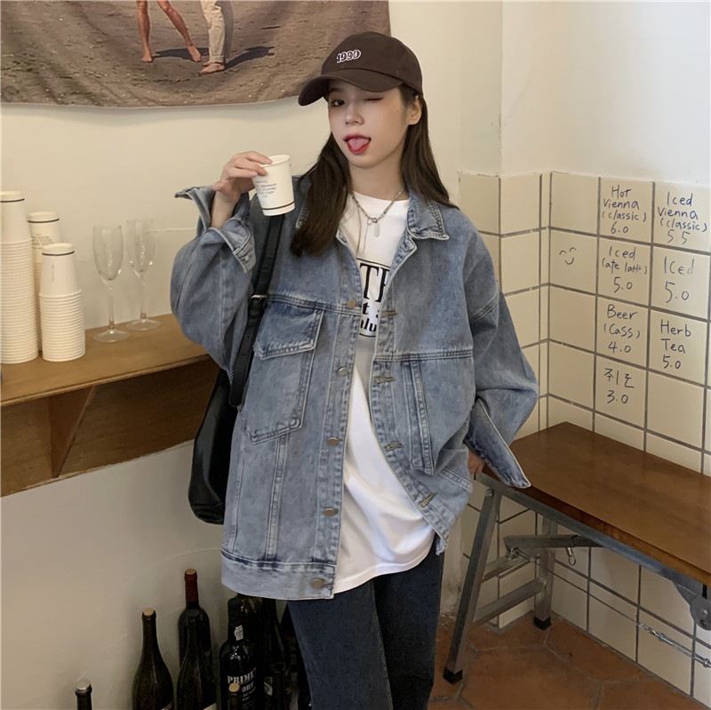 2024新作 秋冬 裏起毛 韓国ファッション ゆったりスウェット ジャケット デニムジャケット 長い ポケット ドロップショルダー ストレート デニムジャケット コート