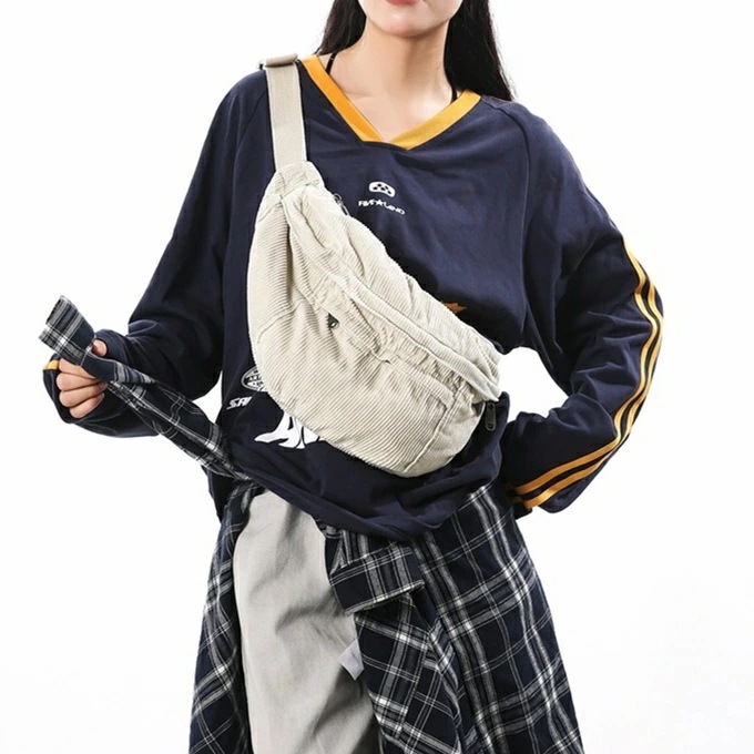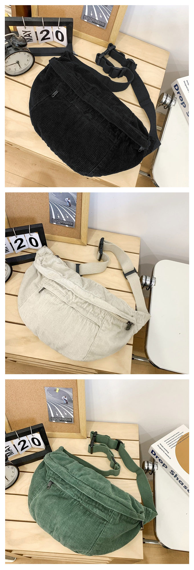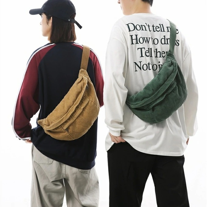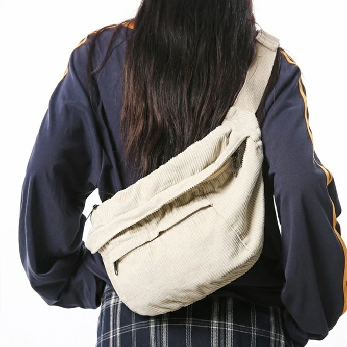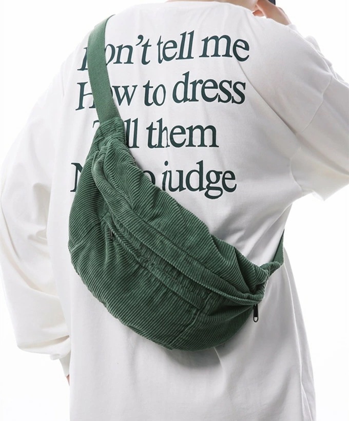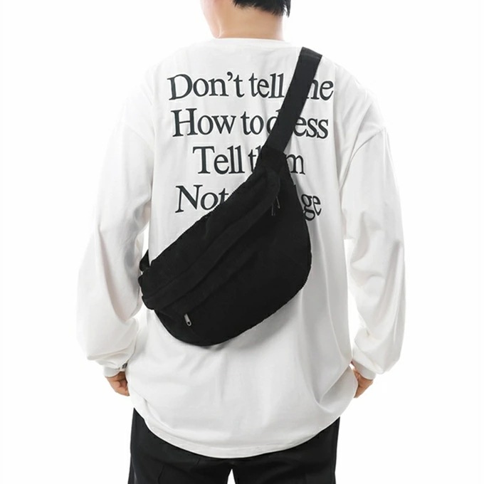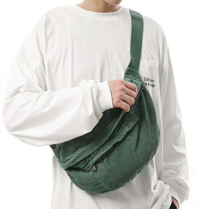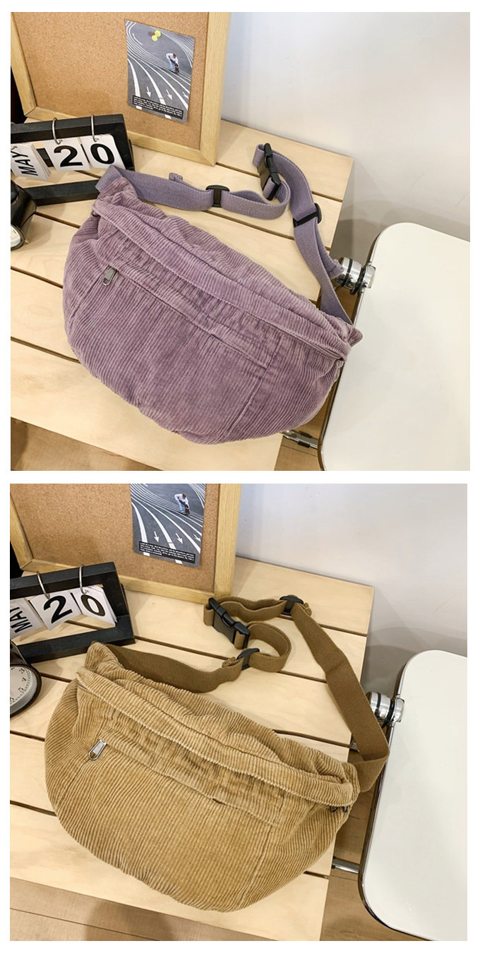 大きめ コーデュロイ メッセンジャーバック サコッシュバッグ リポーターバッグ レディース メンズ 男女兼用 たっぷり収納 外側2ポケット メッシュポケット 斜め掛け ブラック 黒
