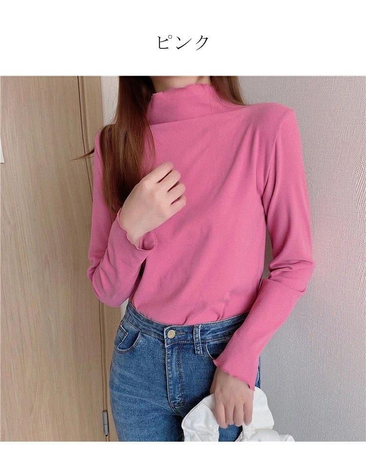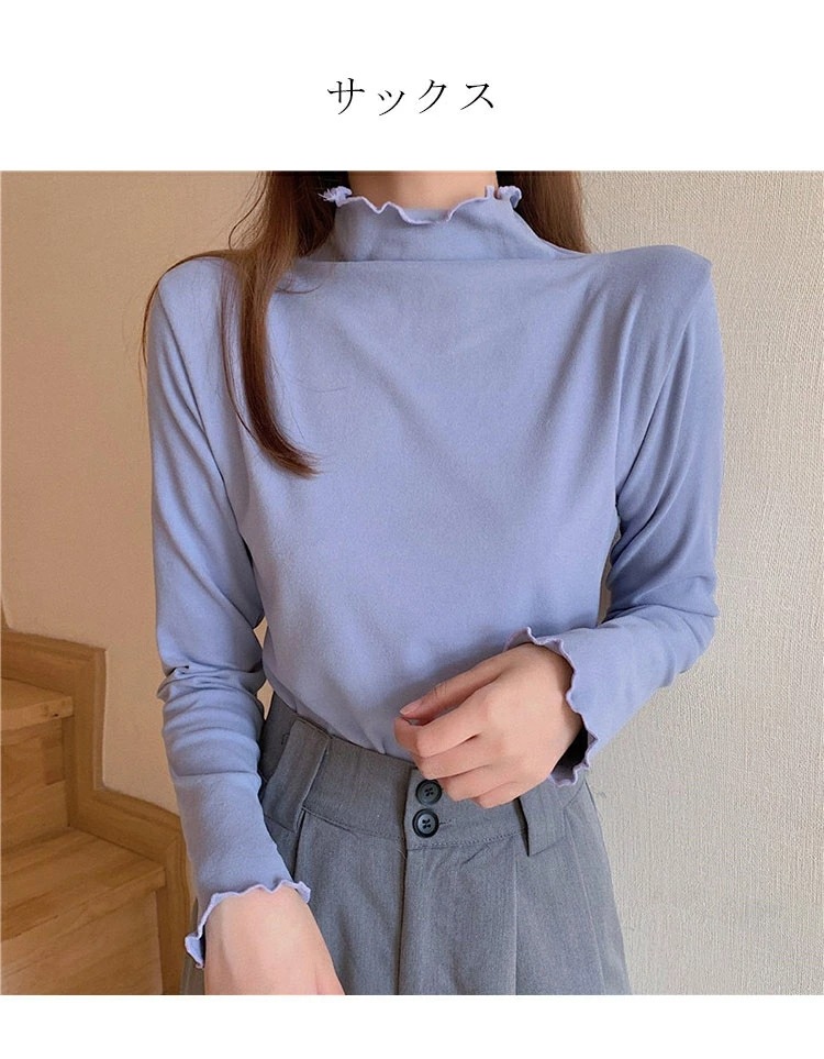 カットソー 秋冬 微起毛 プチハイネック レディース トップス フリル 長袖 ハイネック インナー 春 ストレッチ 伸びる 柔らか コーデ レイヤード きれいめ おしゃれ フリルネック