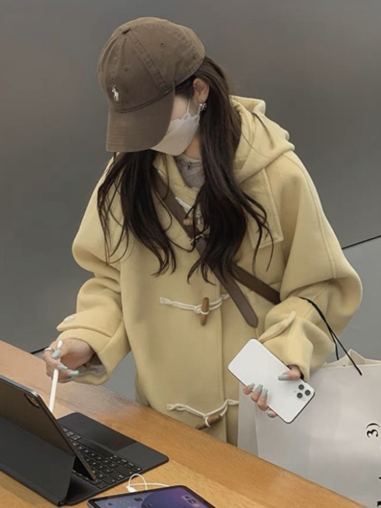 大人っぽチェスターコート 韓国系高級ツイードコート秋冬牛角ボタンイエロー小柄コート2024年新作 メガ割 トレンチコート