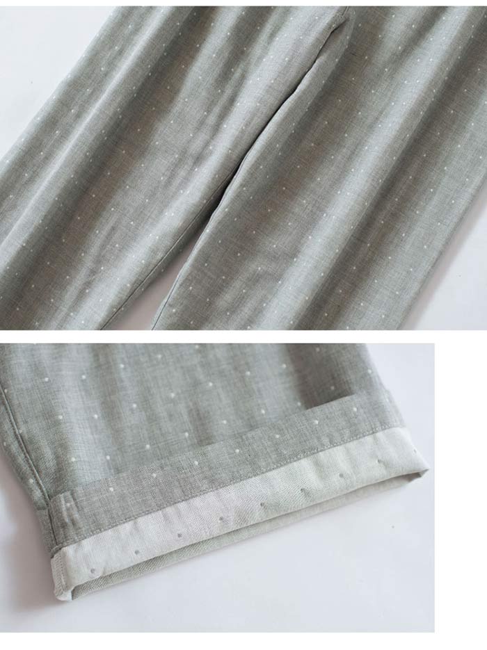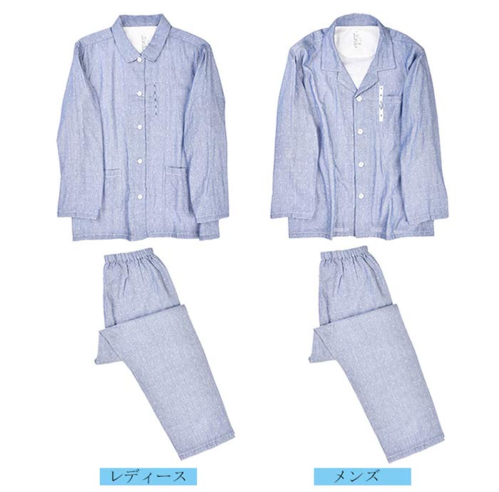 ダブルガーゼ パジャマ ドット柄 綿100% 前開き パジャマ レディース メンズ 長袖 コットン100% 2重ガーゼ ガーゼパジャマ 水玉 春 夏 薄手 ルームウェア 部屋着 寝巻き カップル お揃
