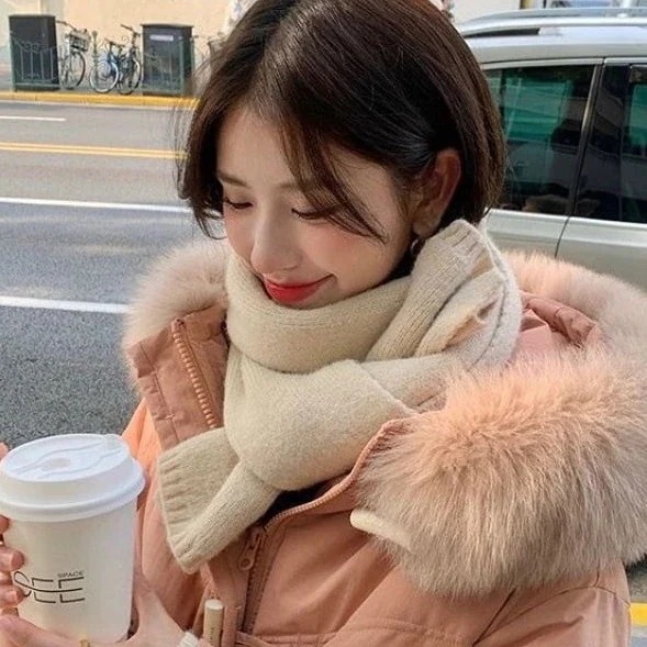 デイリーマフラー 百ヒッチニットマフラー女性の冬の雰囲気の純粋な色の新しい韓国語版シンプルでソフトな暖かい怠惰な風の小さなスカーフ デイリーマフラー