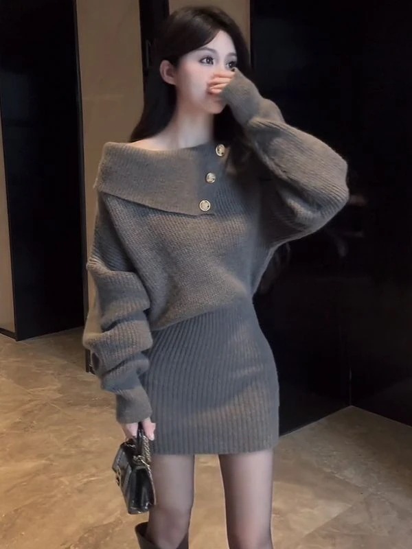 ニットワンピース セーター トップス ニットトップス レディースファッション 秋と冬2024新しいファッションセーターのドレス ドレス ヒップスカート タートルネックワンピース ワン