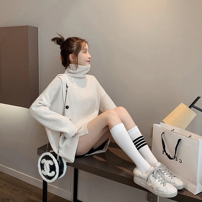 韓国ファッション ベーシックニット 長袖 タートルネック ニットレディース 着痩せ ハイネック インナー トップス ゆったりスウェット ニット セーター