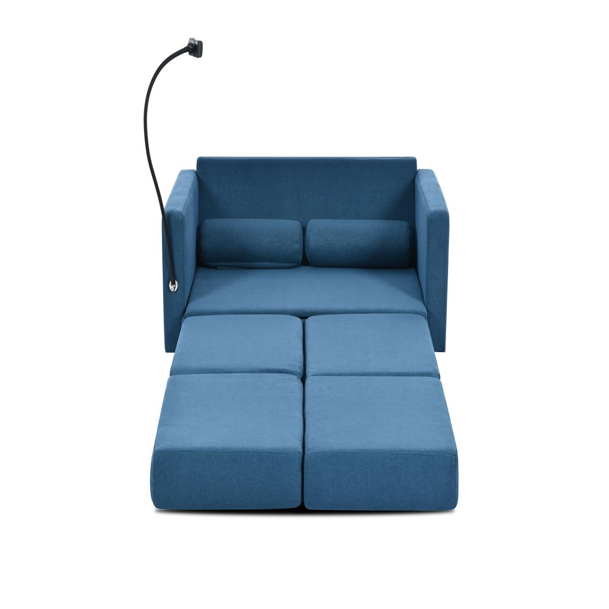 リビングルームのための調節可能な背もたれ付き収納、プルアウトベッド付きラブシートスリーパーソファ China Blue