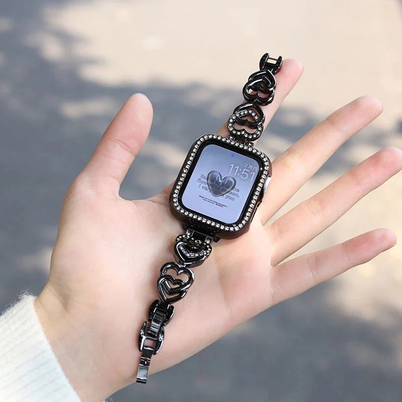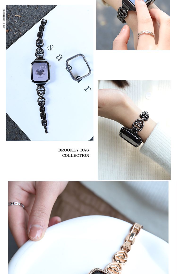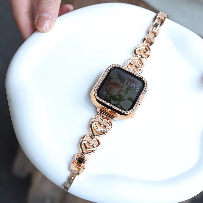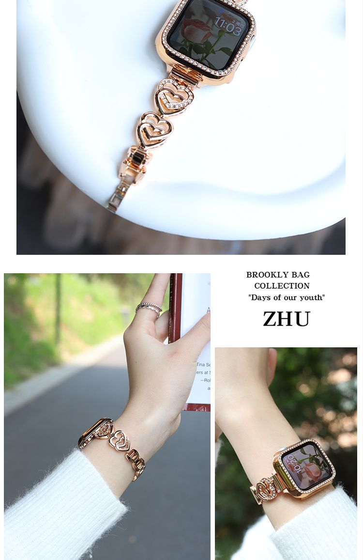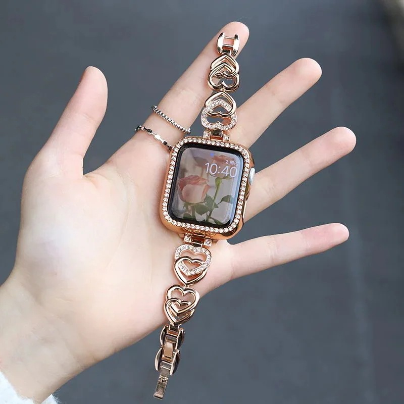 バンド バンド 金属ハートチェーン iwatchSE8Ultra40mm 41mm apple 韓国ファッション 高級感 watch 腕時計用ベルト