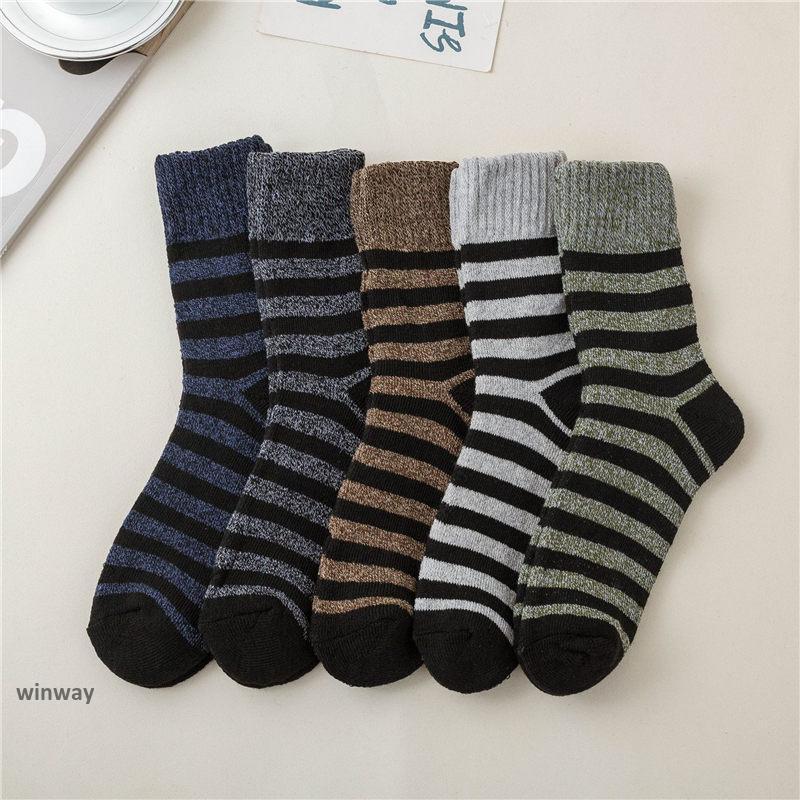 靴下 ソックス メンズ 5足セット 暖かい クルーソックス 秋冬 ルームソックス スポーツ ストライプ 男性 抗菌防臭 靴下