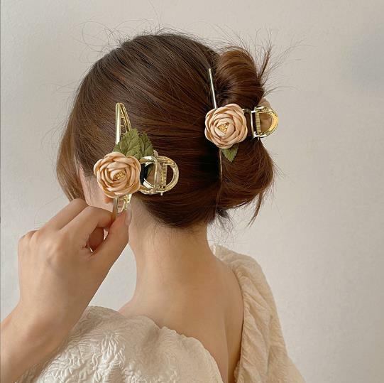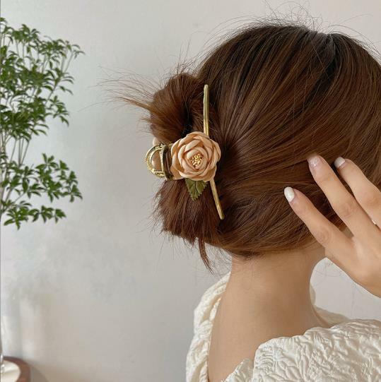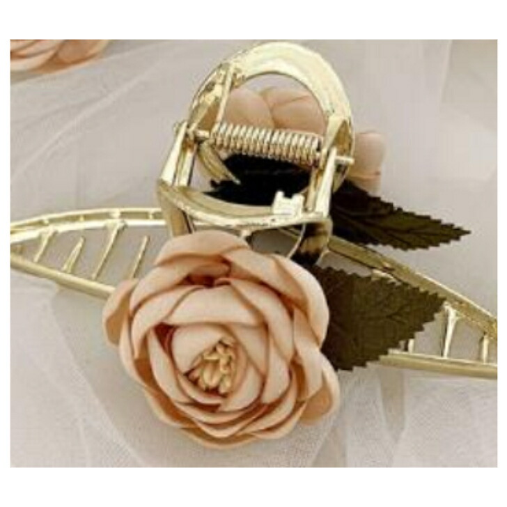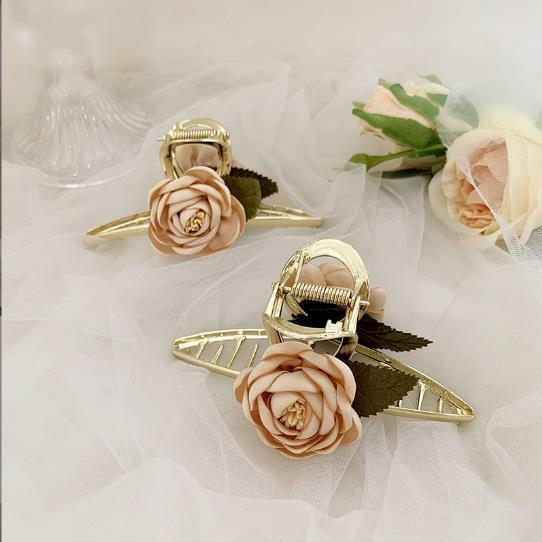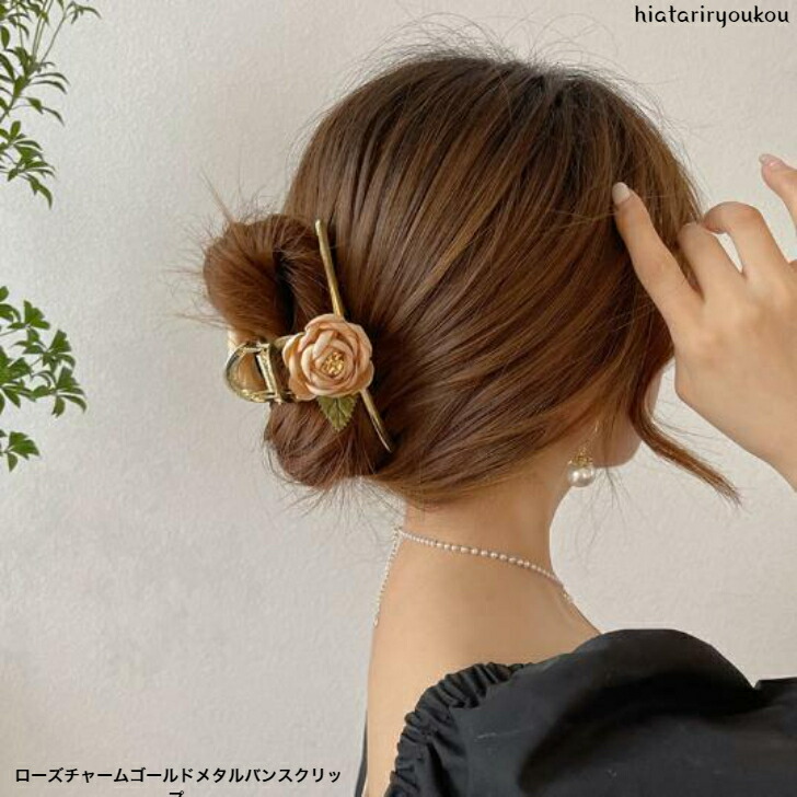 ヘアクリップローズチャームゴールドメタルバンスクリップおとなかわいいパーティ結婚式30代40代50代プレゼント丈夫 ヘアクリップ