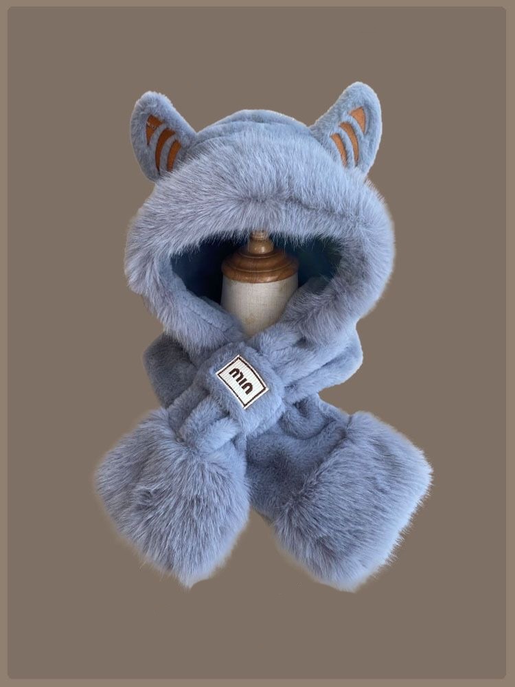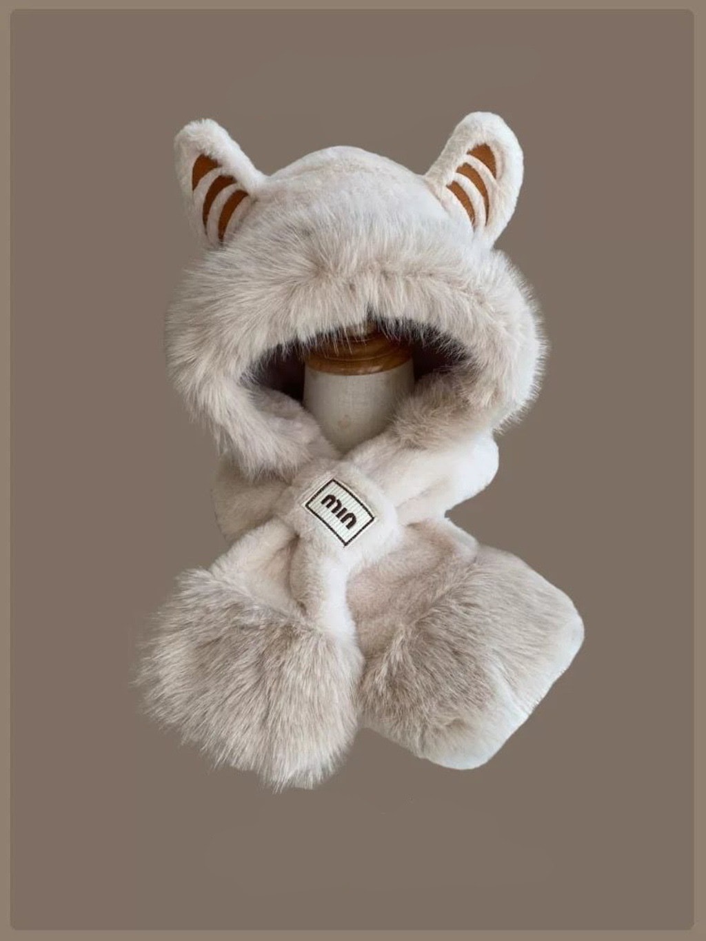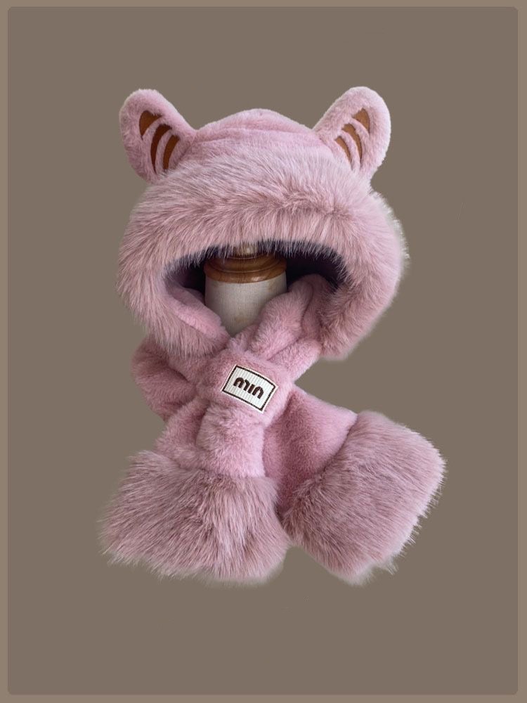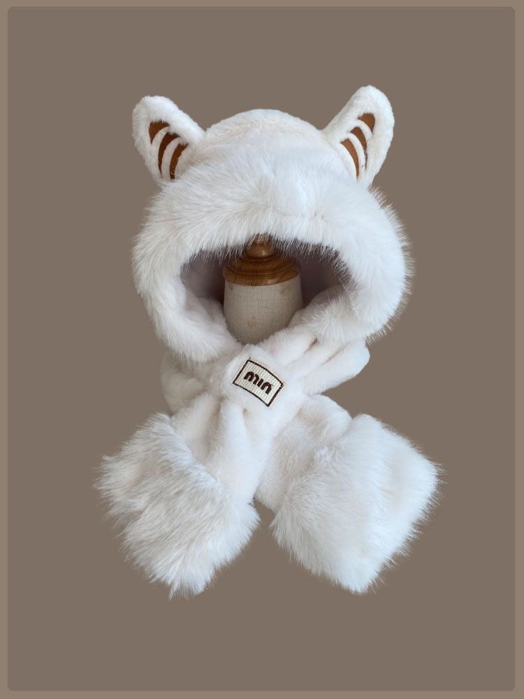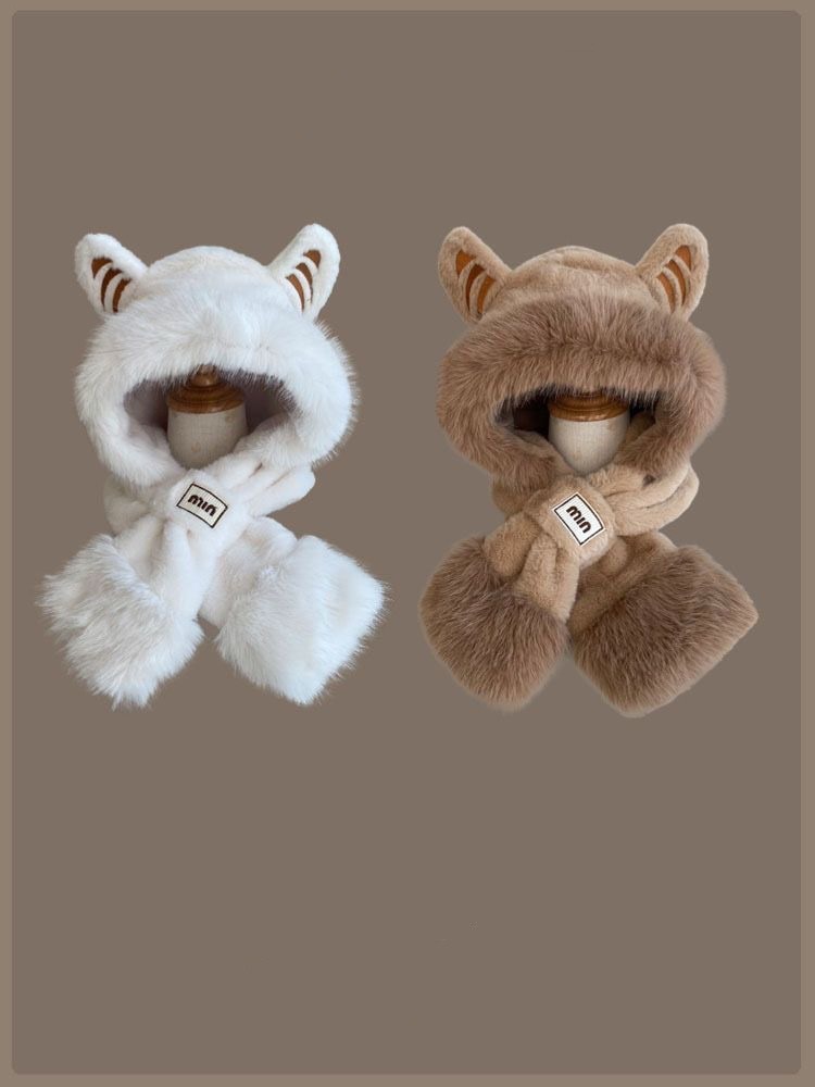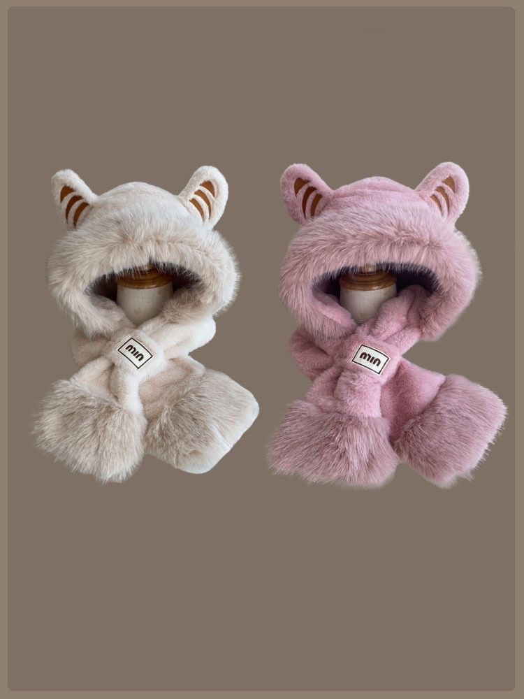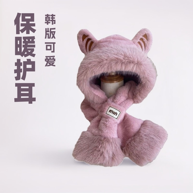 トラの耳帽子マフラー一体帽子女性冬の韓国版かわいいモケット保温耳巻きネック雷鋒帽 ニット帽