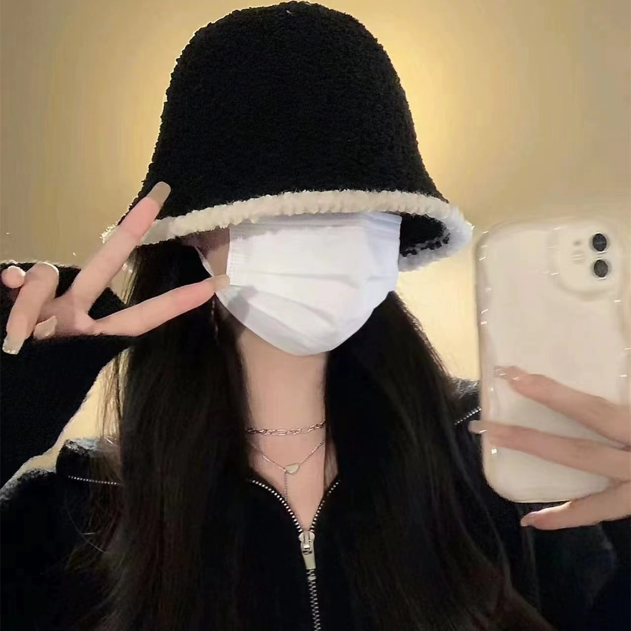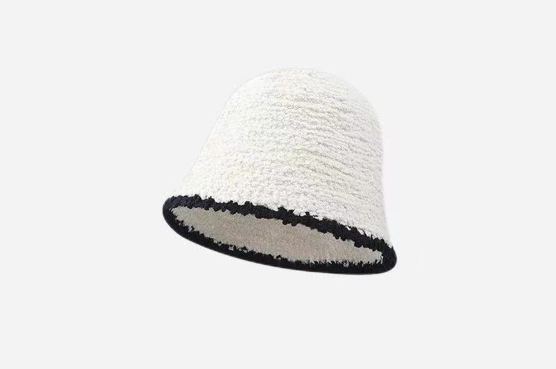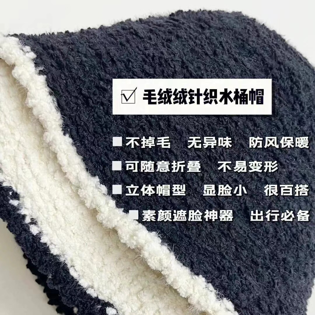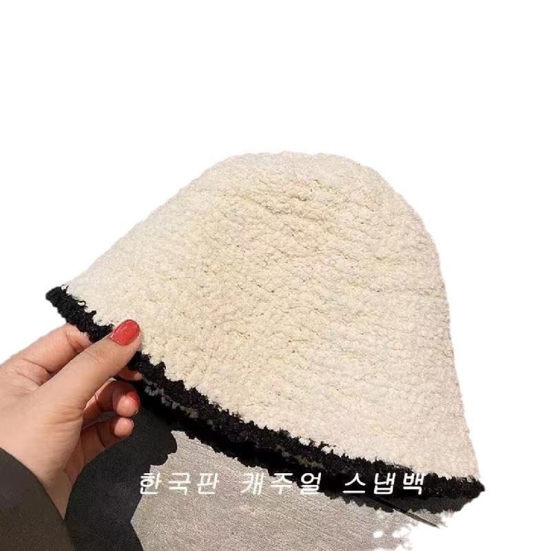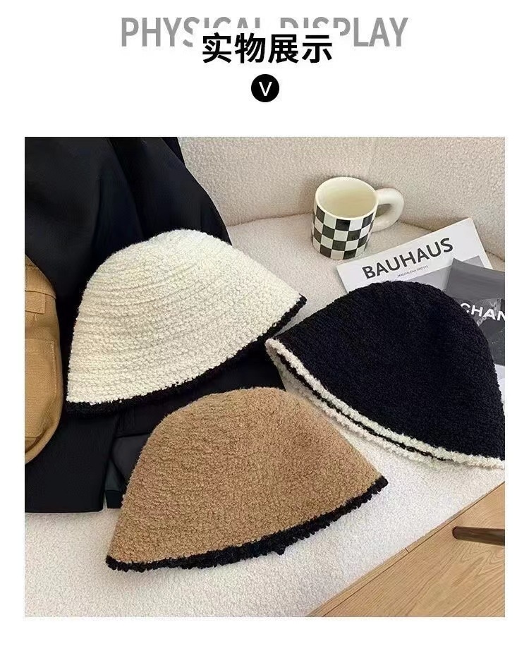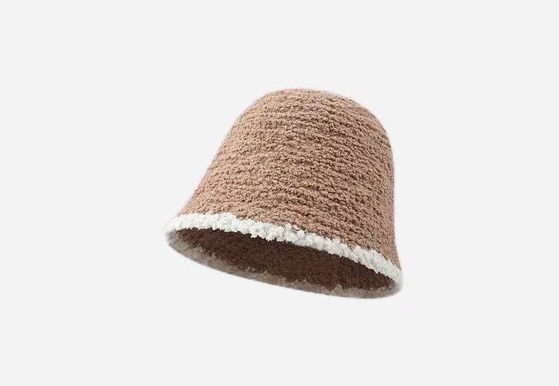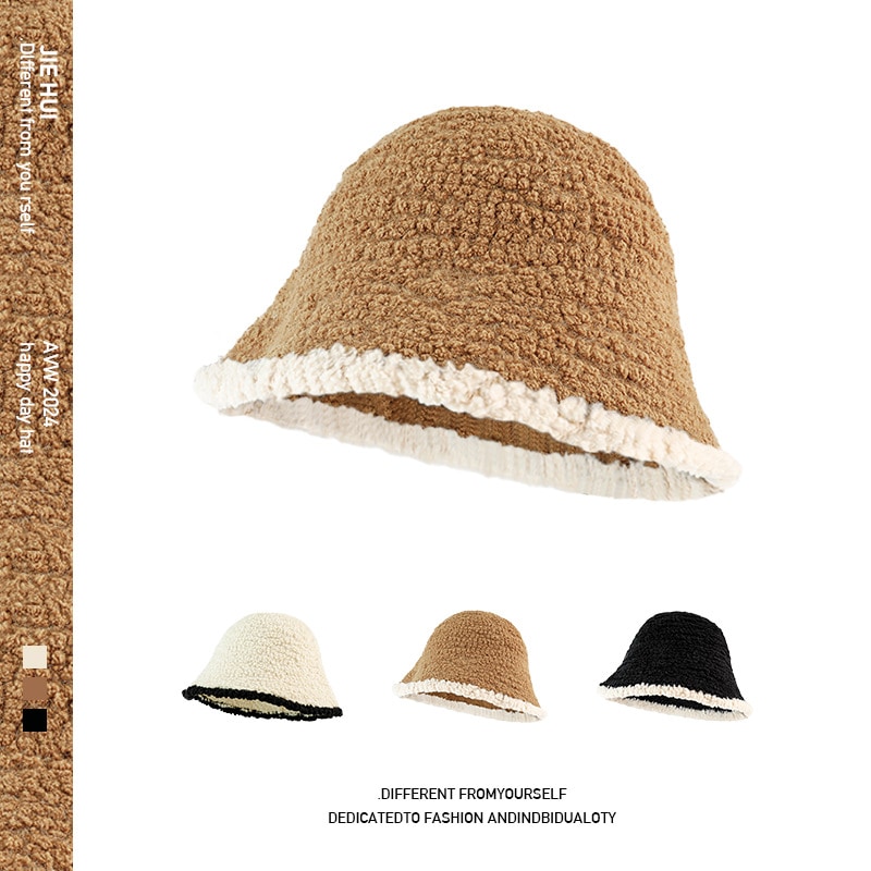 子羊巻き綴じ色鉢帽女性らしさ上品高級感スタンド帽モチモチ保温漁師帽 ニット帽