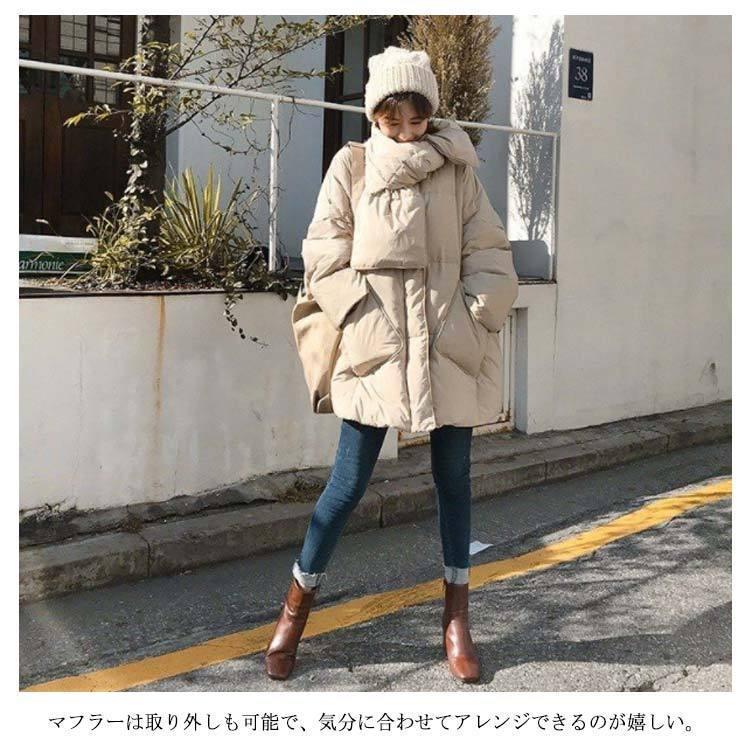 品物を厳選するダウンコートマフラー付きダウンジャケットレディースミドル丈ロングコートロングジャケットノーカラー秋冬あったか暖かいアウター長袖