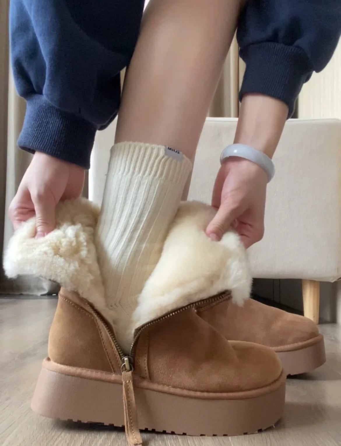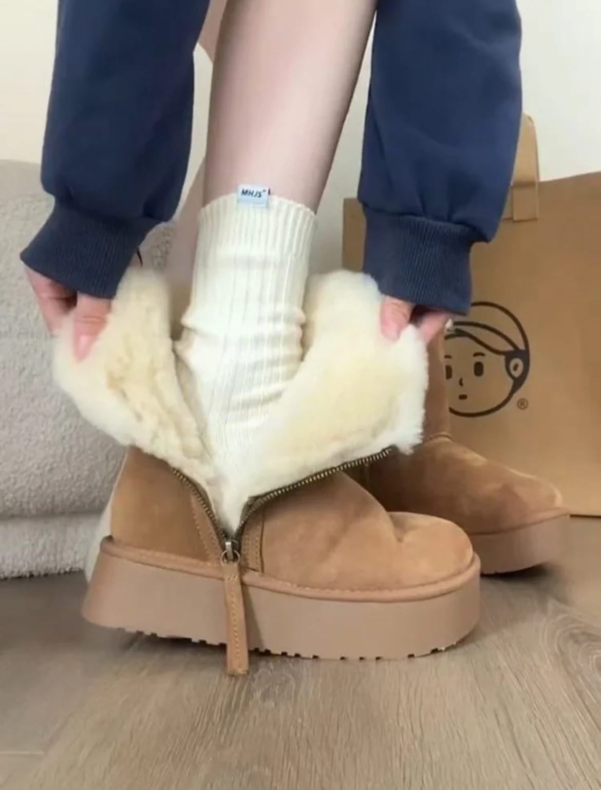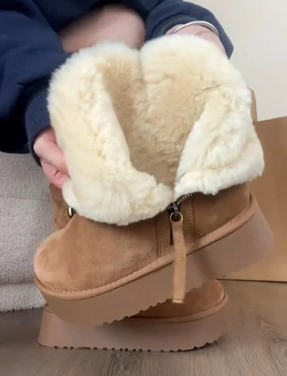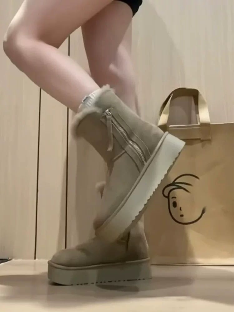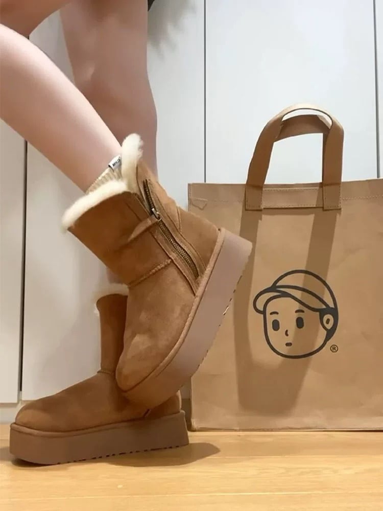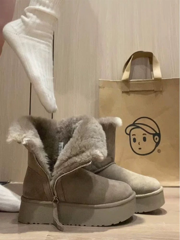 冬 厚底 コットンブーツ 2024 新しい暖かい毛皮 一つ ショートチューブ 厚底 スノーブーツ 女性用 サイドジップブーツ あったか防寒ファーブーツ