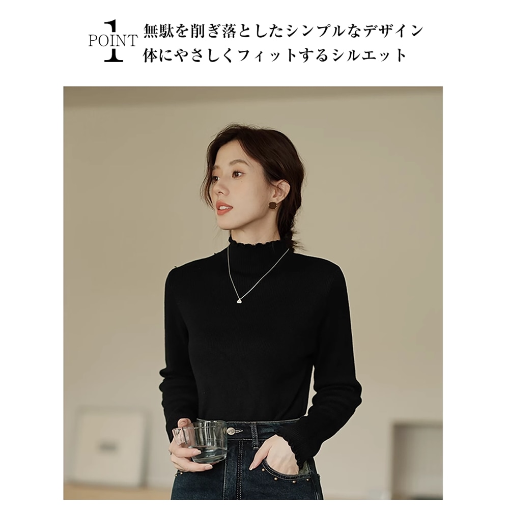 レディース トップス ニット リブ ハイネック 長袖 タートルネック セーター インナー レイヤード 軽量 ストレッチ タイト 無地 万能 着回し もっちり 肌触り