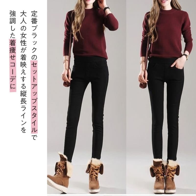 2color裏起毛ストレッチスキニーパンツリピーター多数 スキニー体型カバー ロングパンツ
