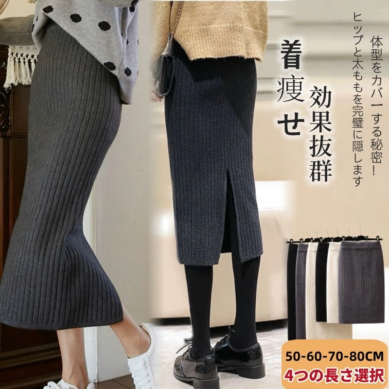 マキシスカート大人気 秋ニットスカート オールシーズン着用可能なスカート 春夏 百掛けロングスカート スリミング着痩せタイトスカート高い弾 体型をカバープリーツスカート 暖かいフレアスカート
