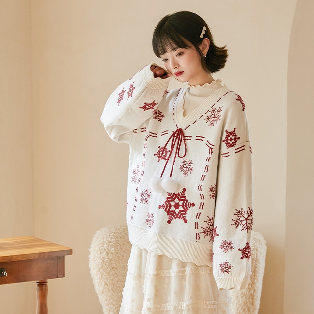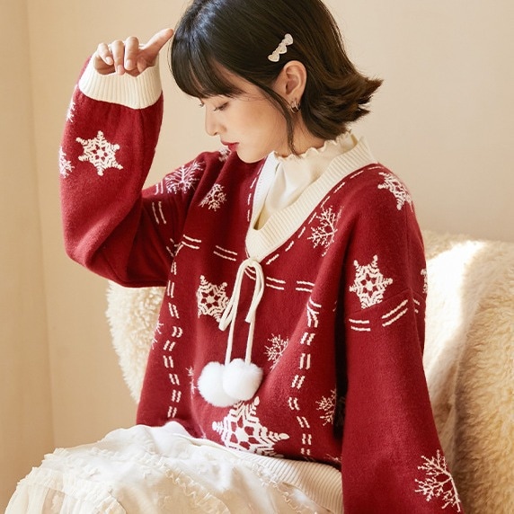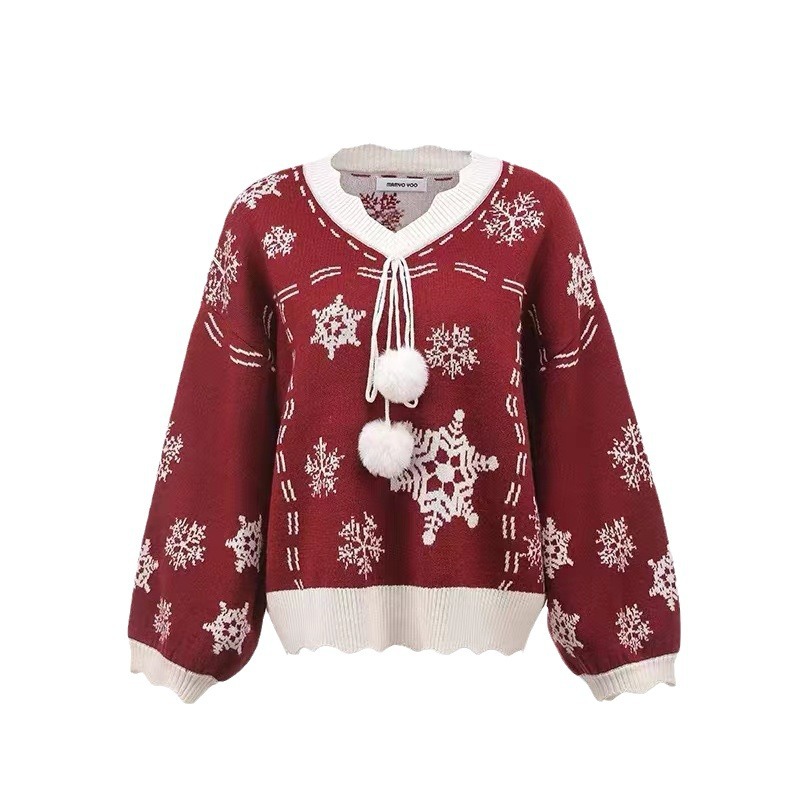2024韓国の人気 秋冬クリスマス パーカー セーター 赤い ニットは雪花ジャカードを着て甘い上着を着て クリスマスコスチューム ファッション 百に乗る かわいい 防寒 レディースニット