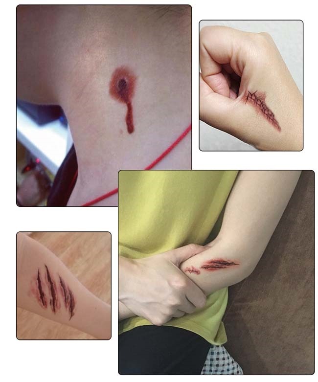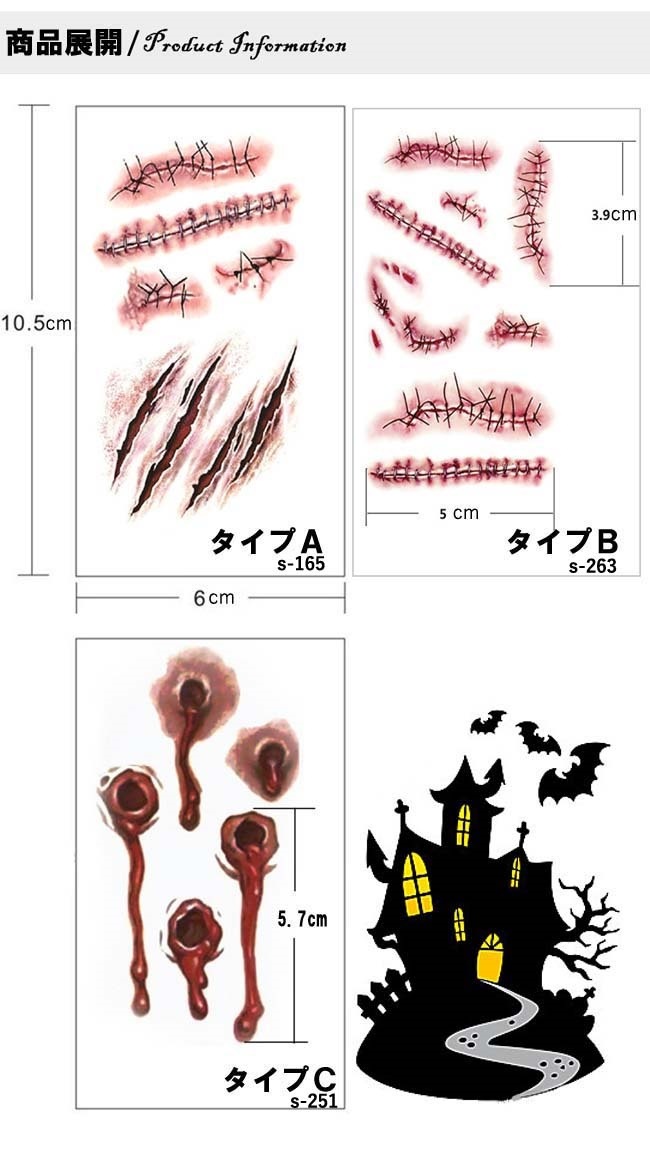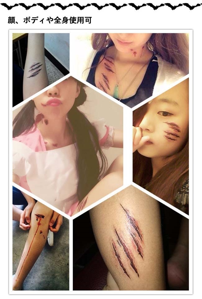 ハロウィン コスチューム 傷シール おばけ キズシール 仮装 ボディー シール 傷 ゾンビコスプレ特殊メイク 怪我 フェイク 偽物 嘘 アート フェイスシール スケアゾンビ イベント 血hall