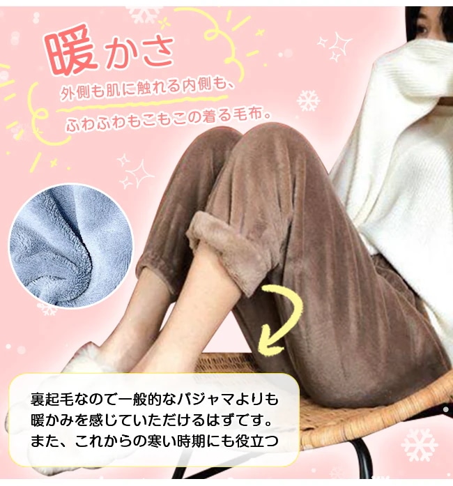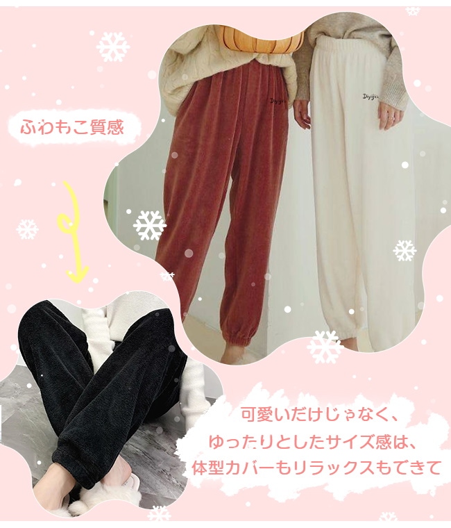 ロイヤル 秋冬ルームパンツ ルームウェア 起毛 超保温 あったか もこもこ 厚手 レディース パジャマ 部屋着 ふんわり 肌触り 柔らかい ズボン 可愛い ウエストゴム 暖かい
