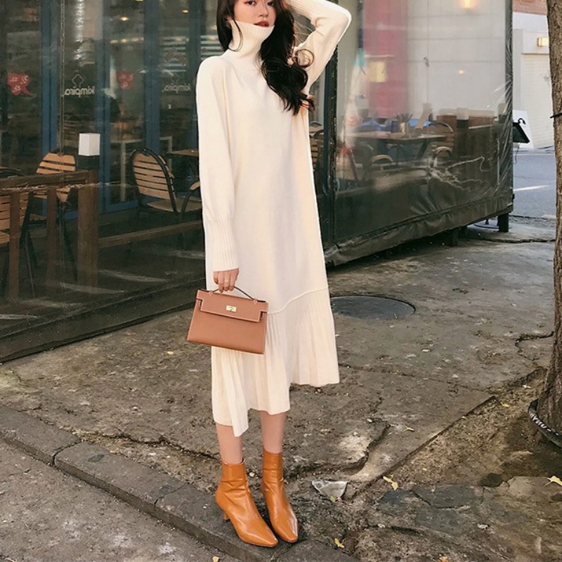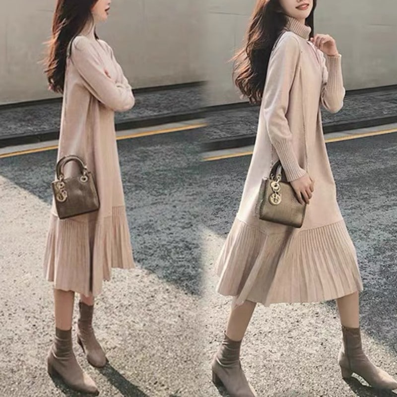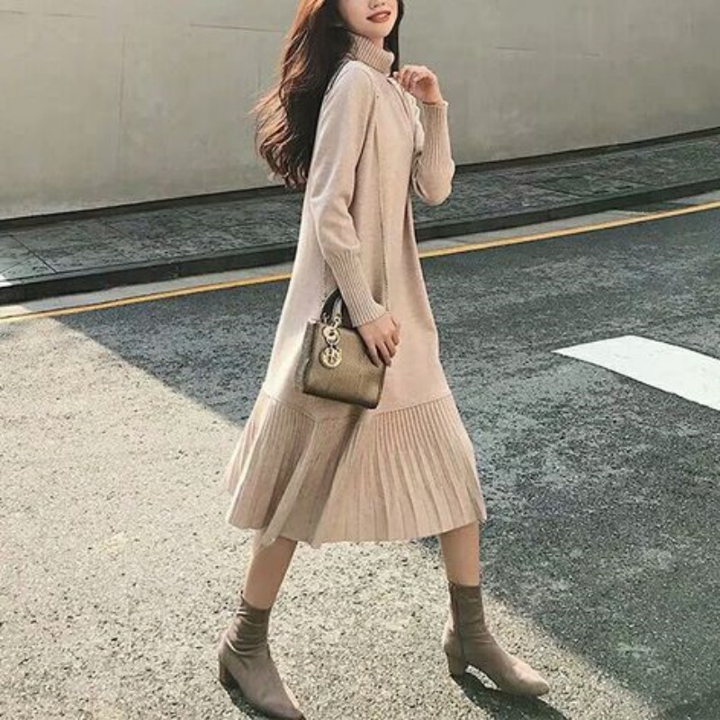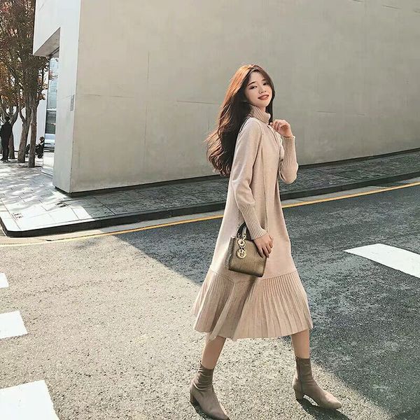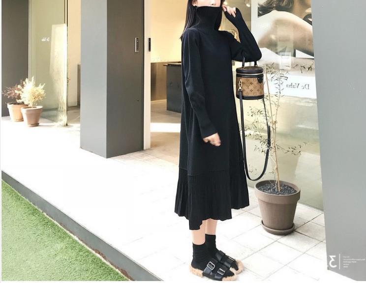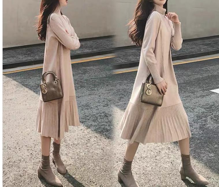 秋冬作 日系 ロング 長袖 チェック 切り替えワンピース 秋冬新作 ニットワンピース 可愛 あたたまることワンピース ニットワンピ