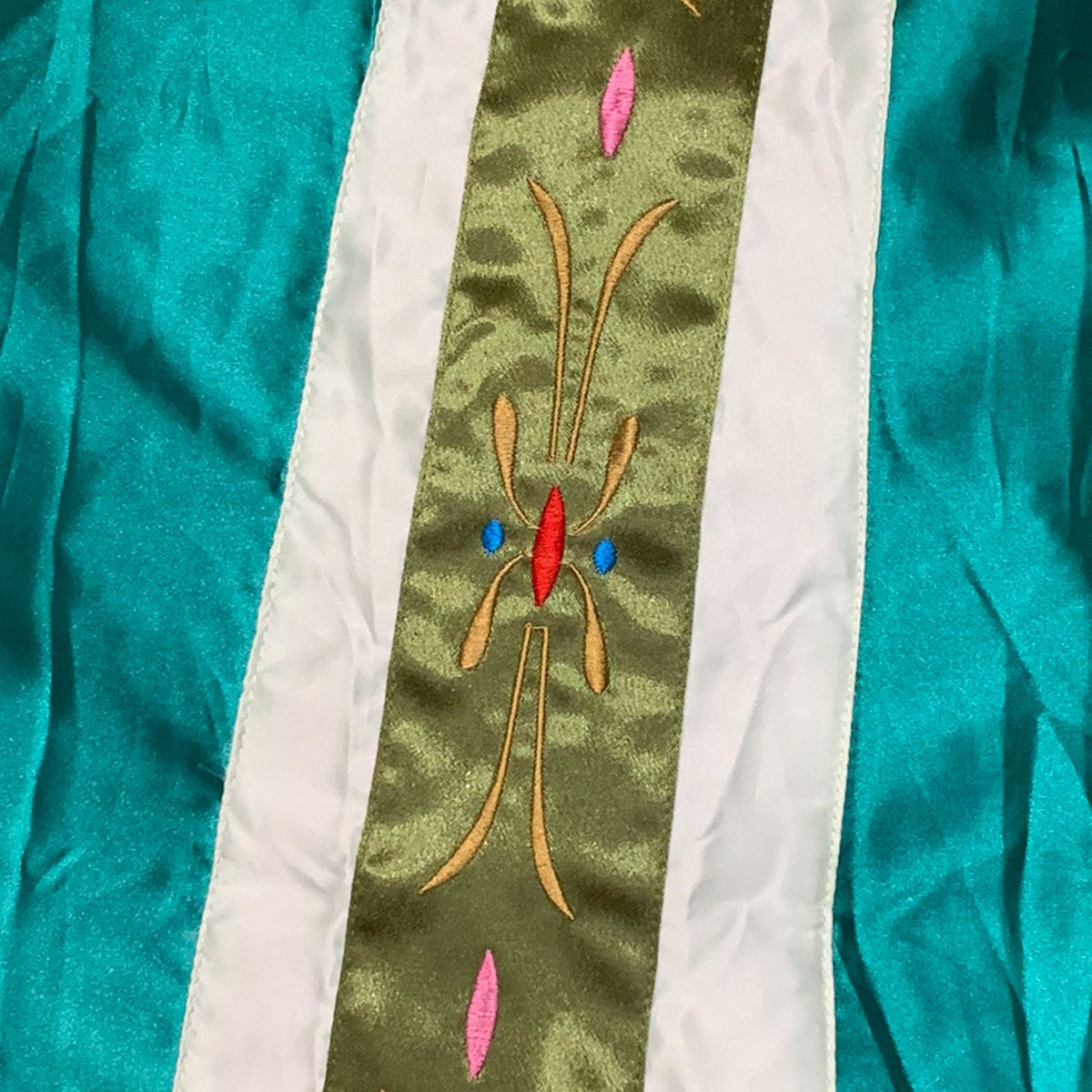 【 刺繍入り 】トップスの胸部分やスカートの模様は全て刺しゅうとなっており、細部にまでこだわり、とても豪華な仕上がりとなっています。