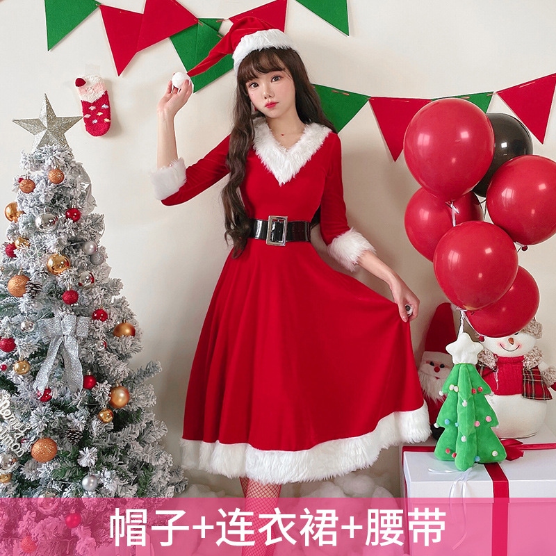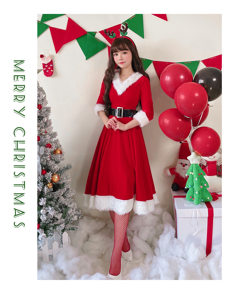 クリスマスコスチューム レディース クリスマスドレス ホリデーパーティー ドレスアップ ファーザークリスマス ロングドレス ドレス コスチューム