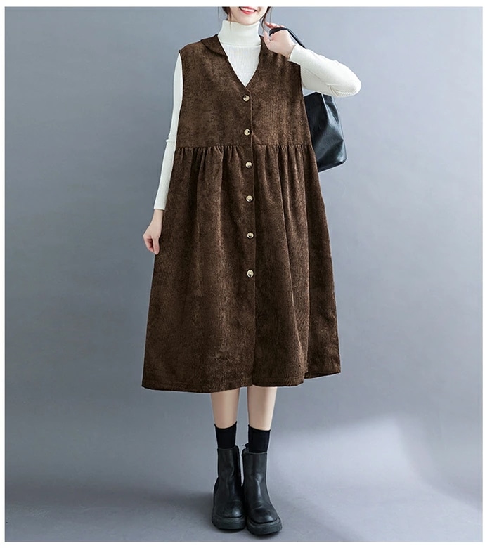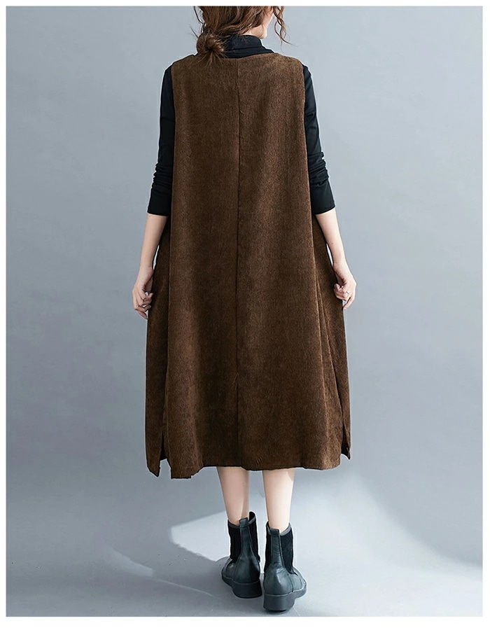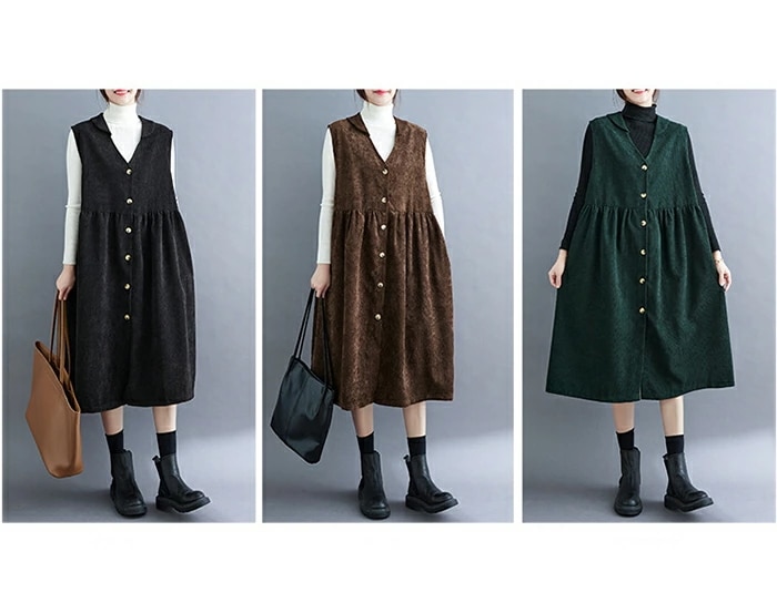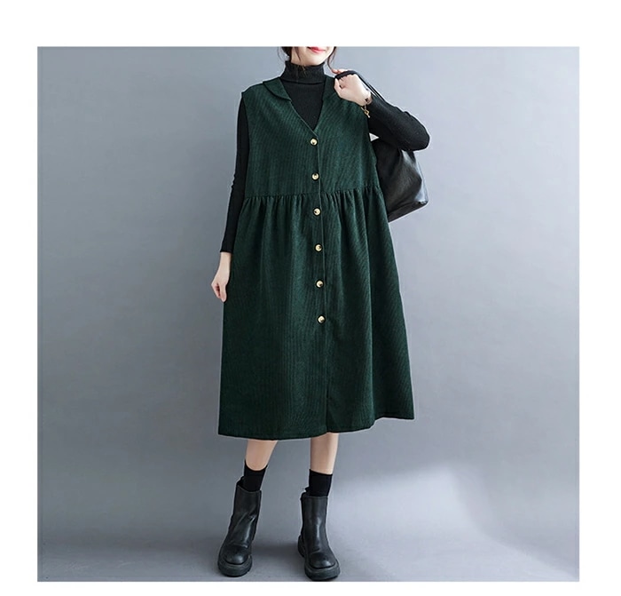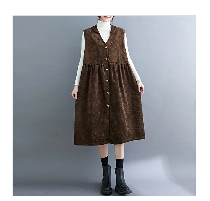 ジャンパースカート コーデュロイ レディース ジャンスカ vネック 無地 秋冬 サロペット ロングワンピース 大きいサイズ ノースリーブ ミモレ丈 レイヤード 重ね着 ゆったり カジュアル 体型カバー