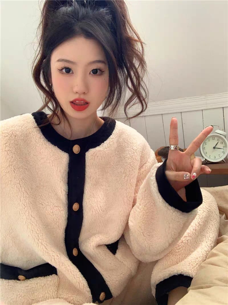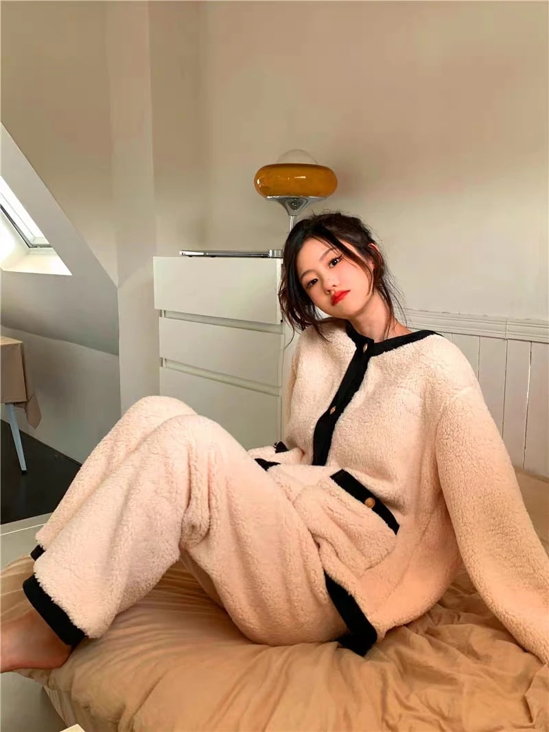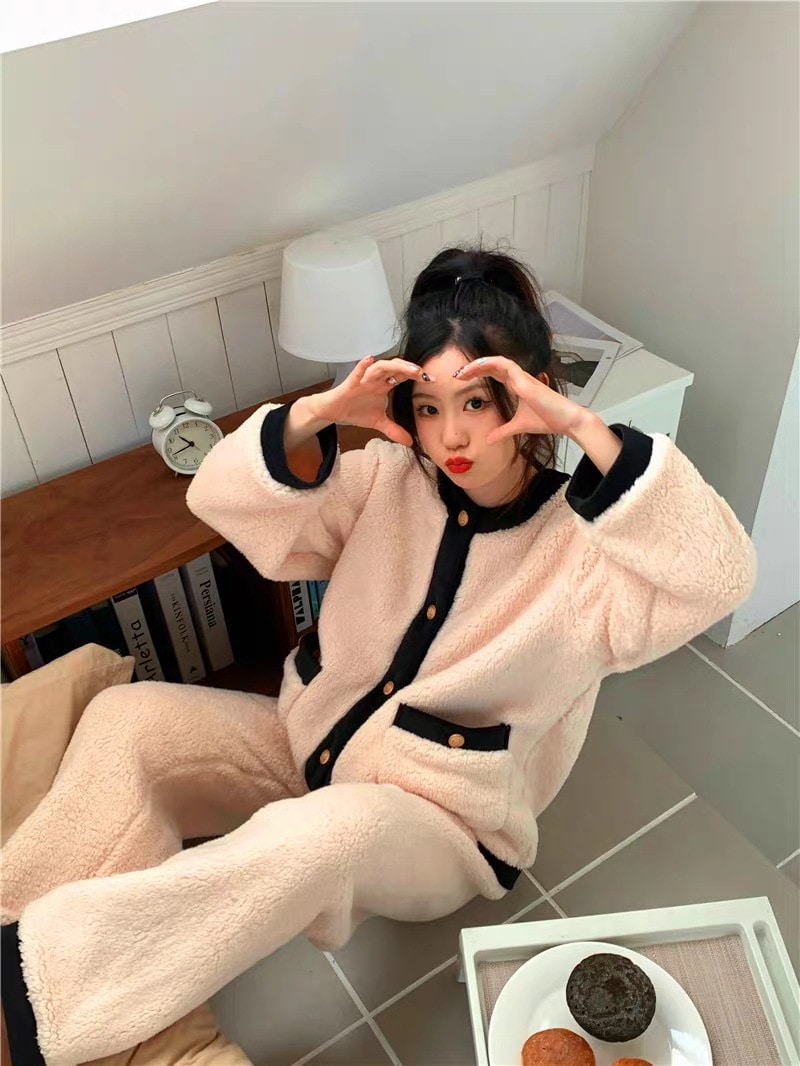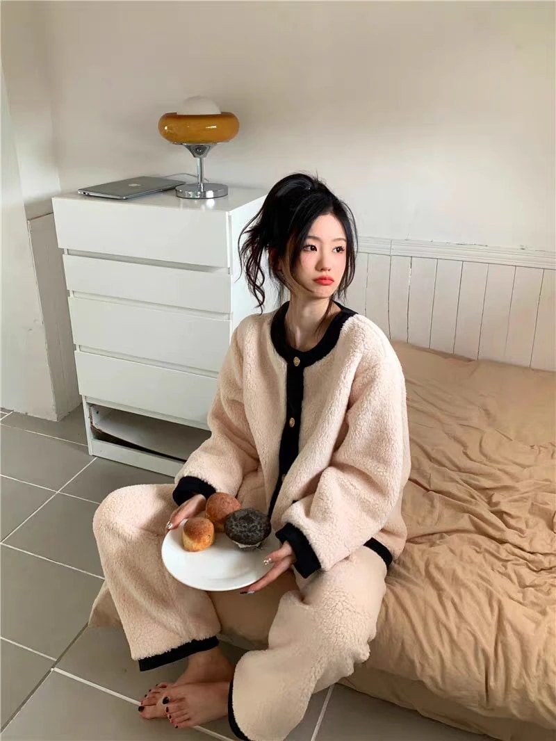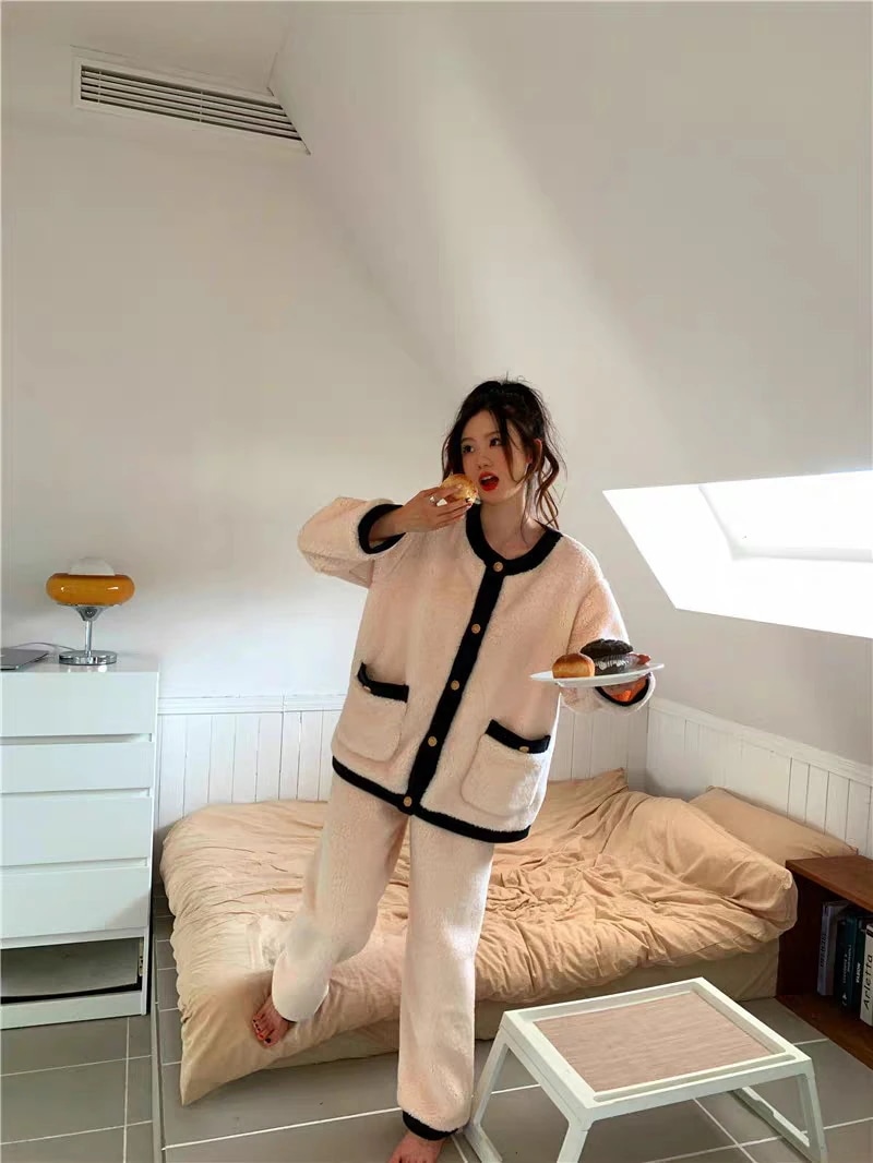 パジャマ ルームウェア レディース 冬 もこもこ パジャマ 長袖 ボーダーパジャマ ルームウェア 上下セット フランネル 厚手 暖かい 部屋着 可愛いウサギ
